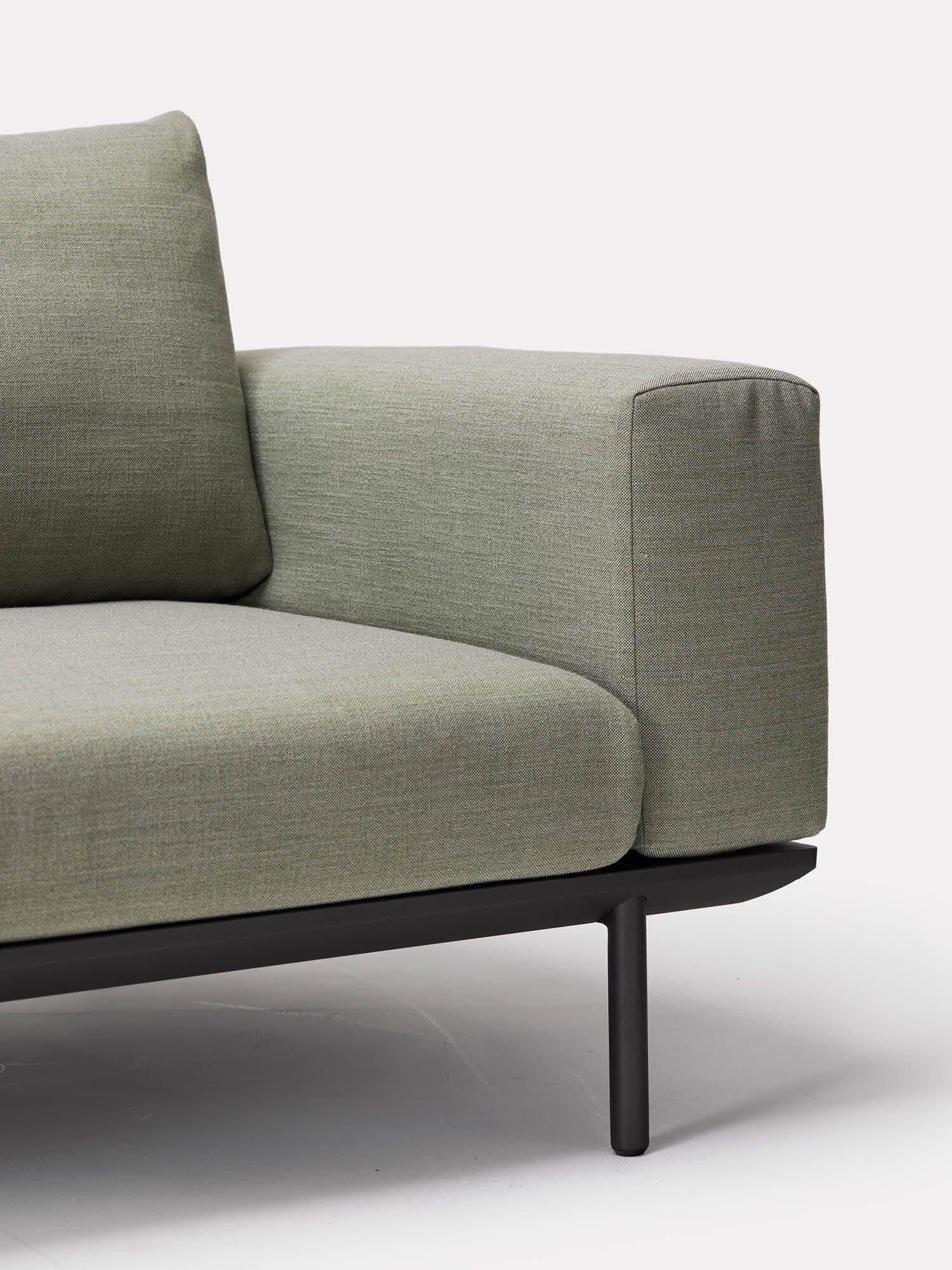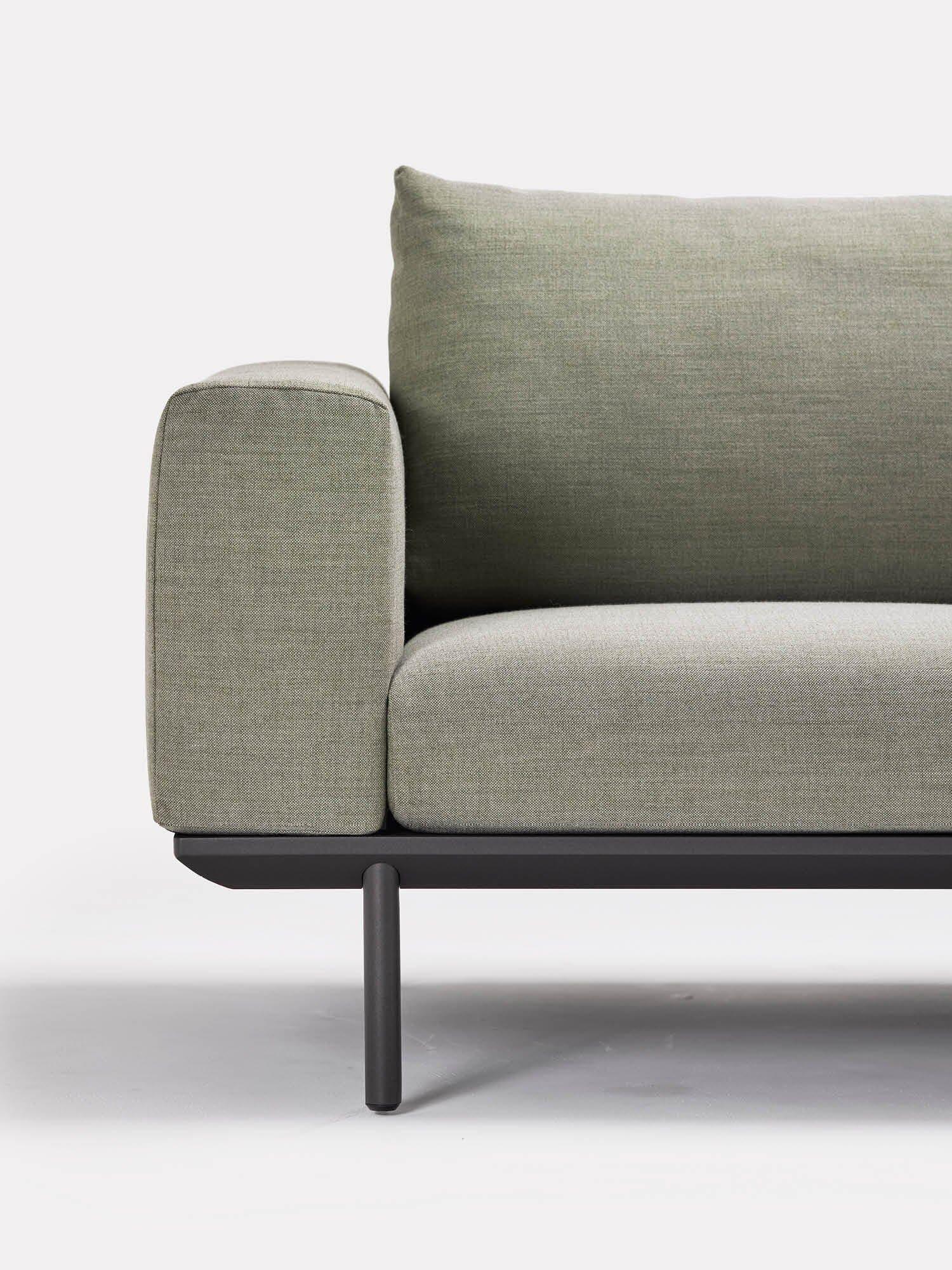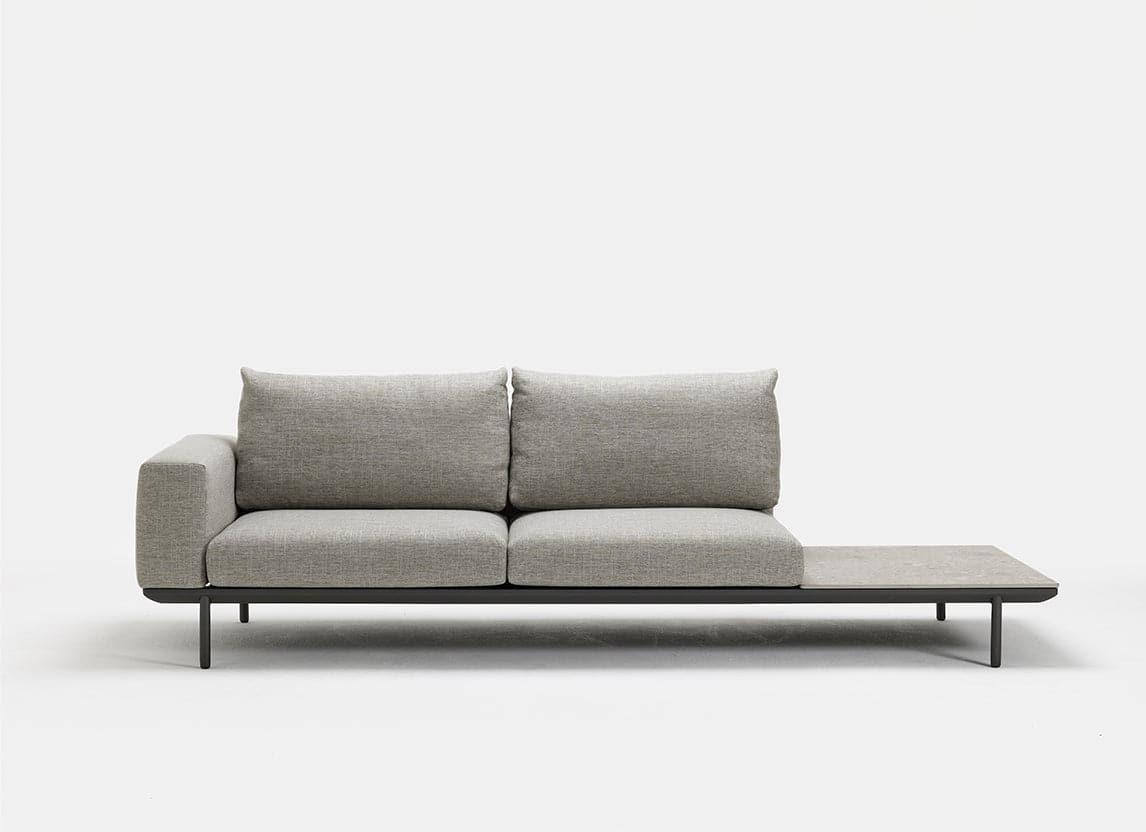 Une plage de sable blanc s'étend des eaux peu profondes émeraude aux falaises de grès et aux plateformes rocheuses. L'Addis est un canapé d'extérieur résistant aux intempéries, avec des tables basses en teck ou en céramique au choix.