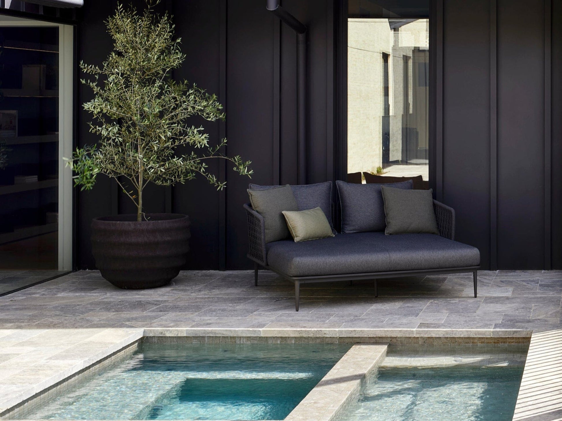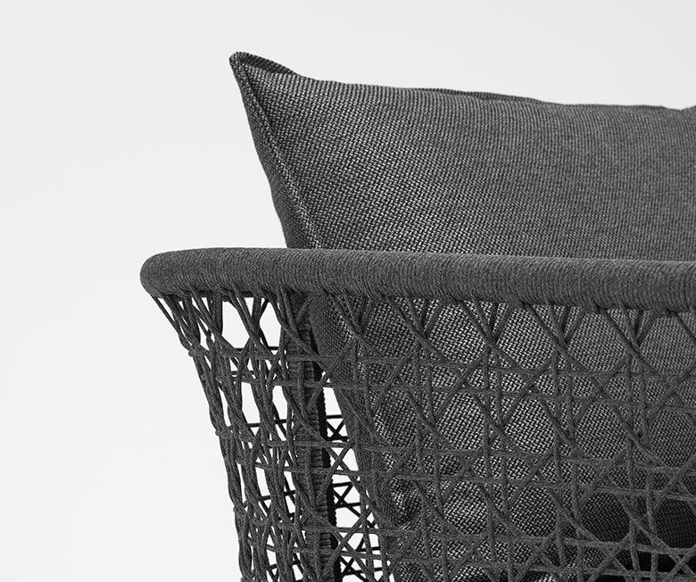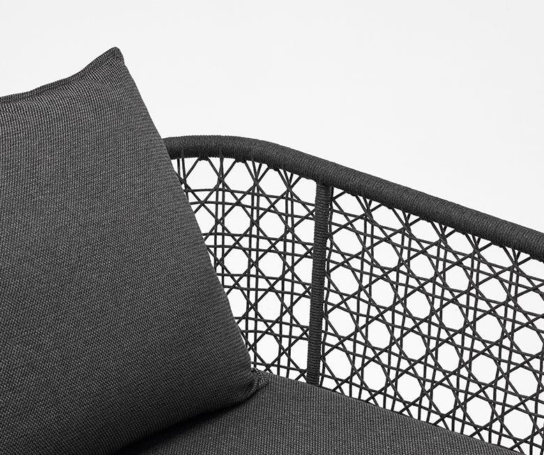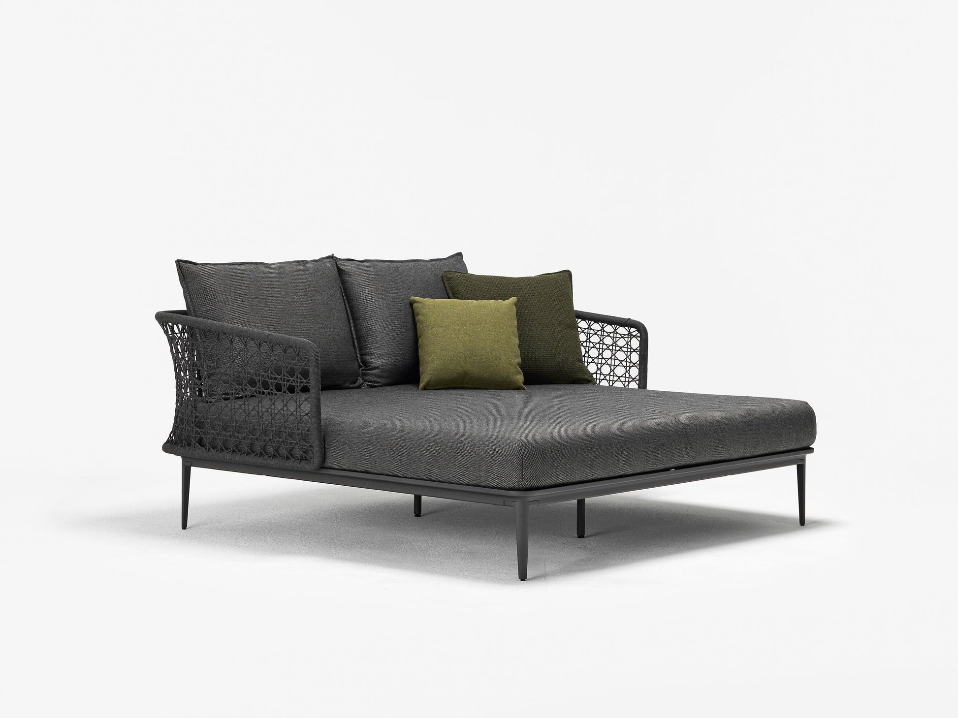 Les lignes raffinées de cette collection de mobilier d'extérieur sont conçues pour résister aux intempéries : structures en aluminium thermolaqué, tissage durable et tissus résistants aux intempéries.