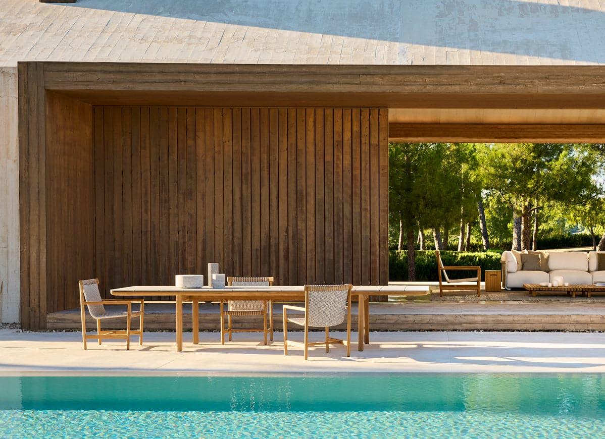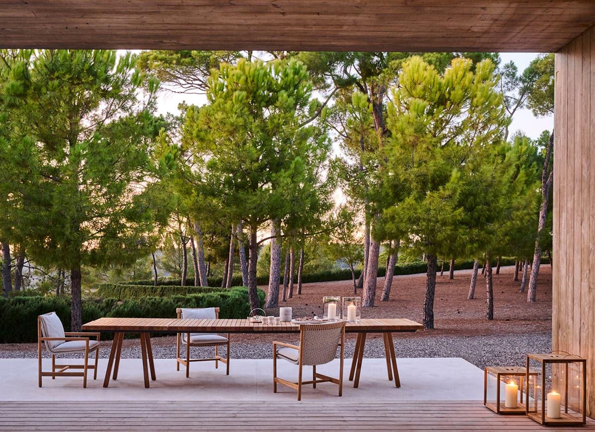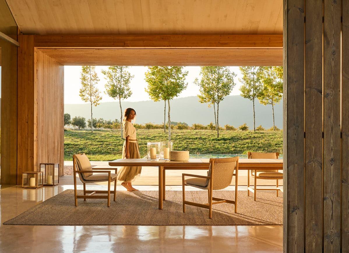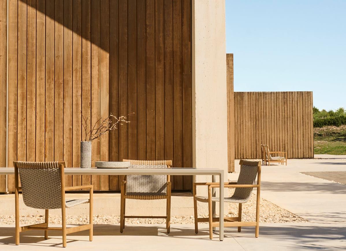 La collection Amanu, d'une grande finesse, transpose l'élégance du mobilier d'intérieur dans le mobilier d'extérieur, alliant confort et durabilité. Les chaises sont dotées d'assises en Canax, une fibre de chanvre tressée, qui semblent flotter au-dessus d'une structure élancée en teck issu de plantations indonésiennes gérées durablement. Leurs pieds fuselés leur confèrent légèreté et grâce, tandis que leurs accoudoirs lisses et semi-arrondis et leurs coussins optionnels rendent ces chaises d'extérieur extrêmement confortables et stylées.