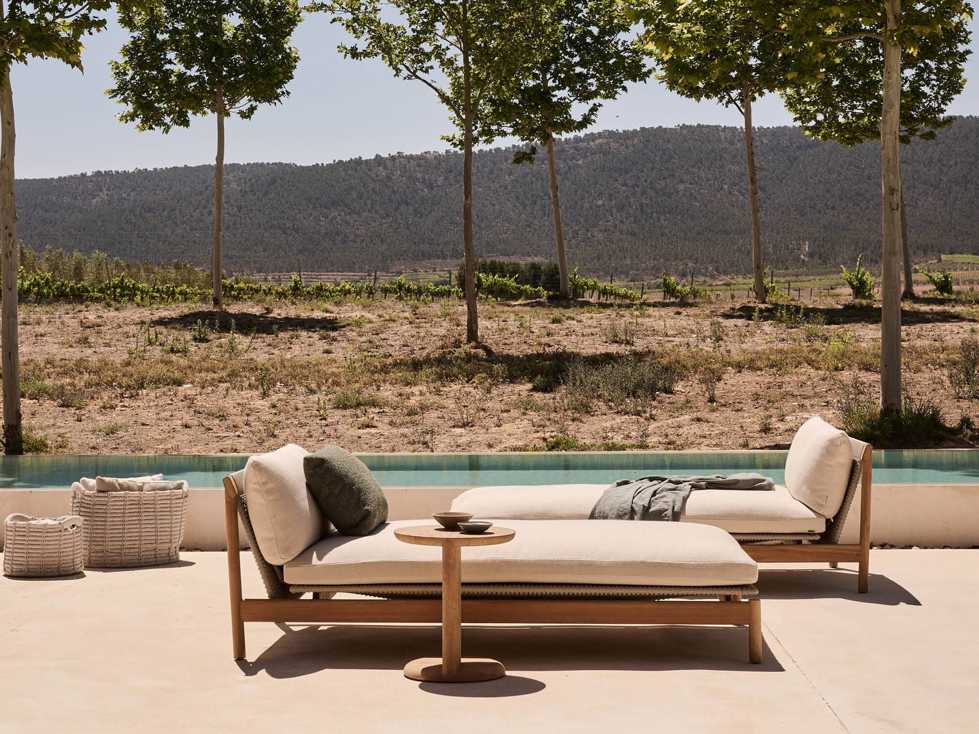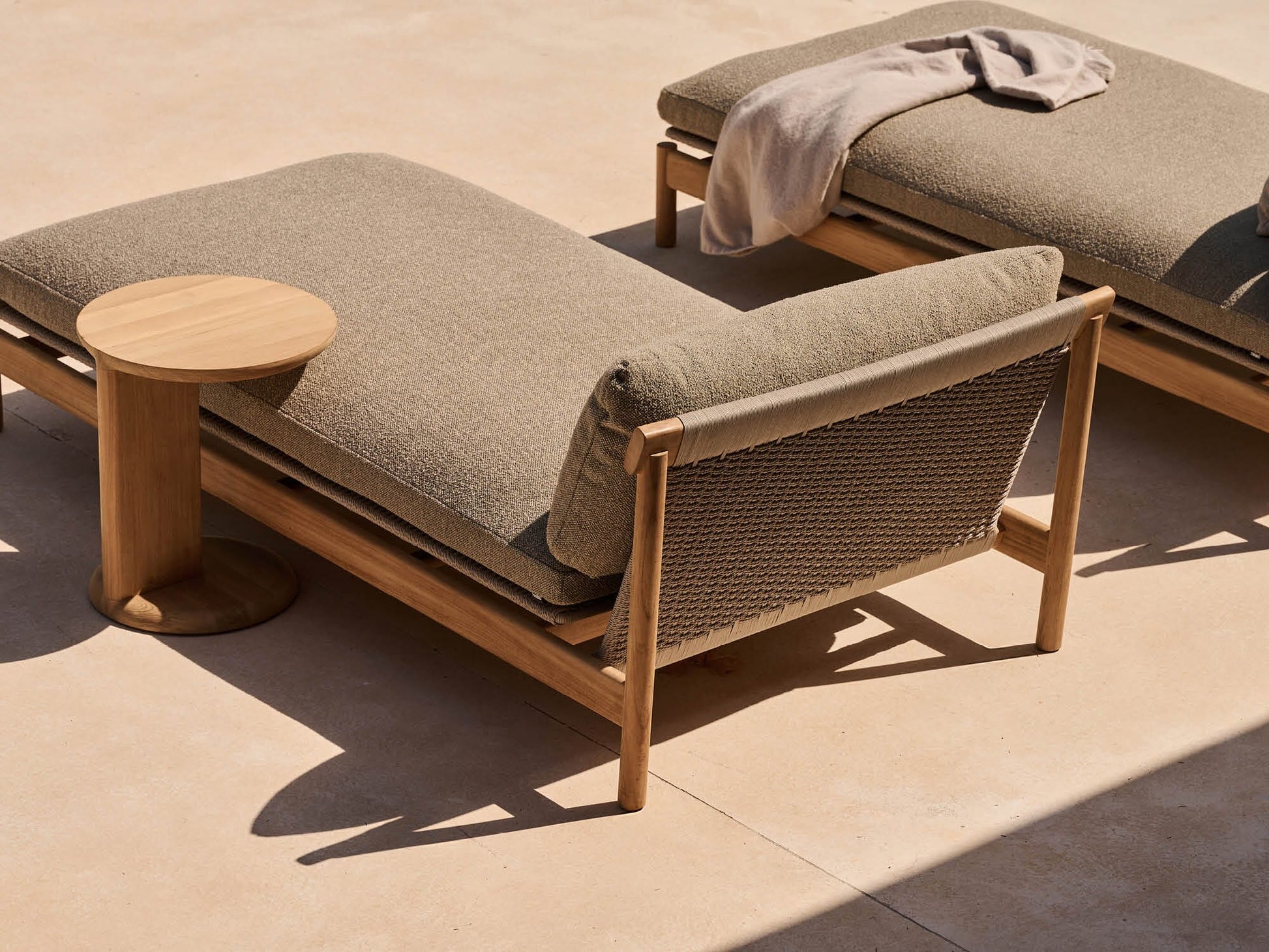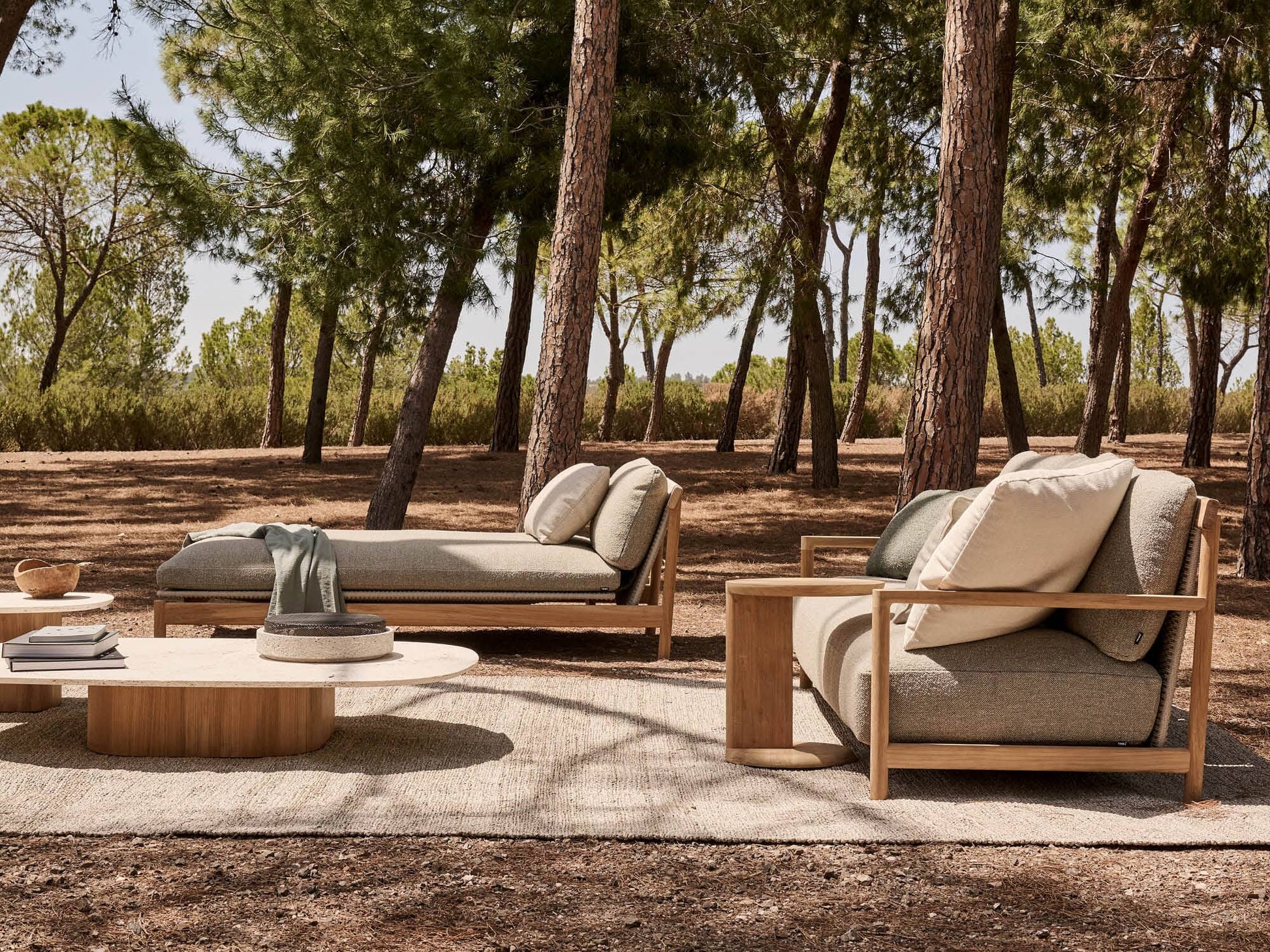 Résolument moderne, son design s'intègre harmonieusement aux intérieurs plus classiques. Inspirée par l'atoll d'Amanu en Polynésie française, la collection incarne un équilibre subtil : à la fois présente et aérienne, flottante et ancrée, confortable et durable.