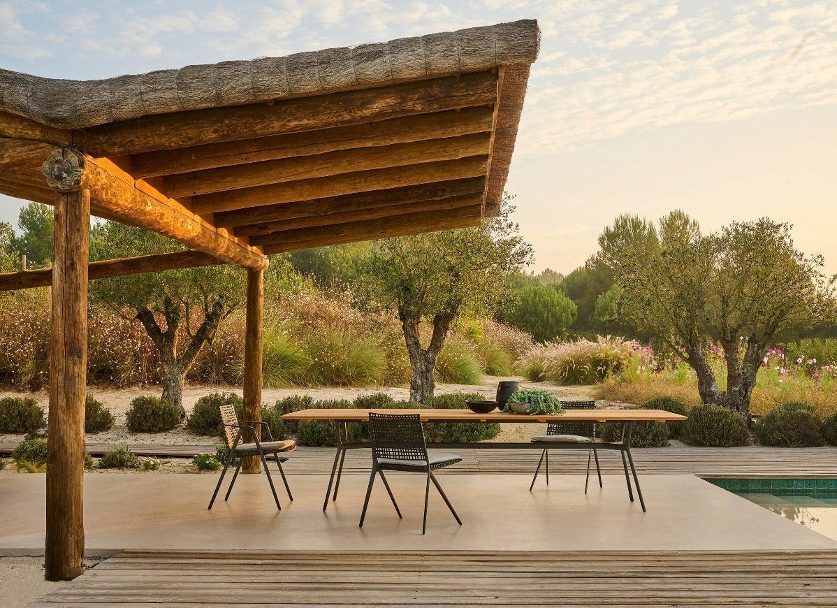 Inspirée par les branches d'un arbre, cette table de jardin arbore des lignes fluides et organiques. Derrière son apparence élancée se cache une conception sophistiquée, réalisée à partir de matériaux soigneusement sélectionnés. Le cadre en aluminium moulé sous pression est recouvert d'une double couche de peinture en poudre pour une résistance optimale aux rayures et aux UV.
