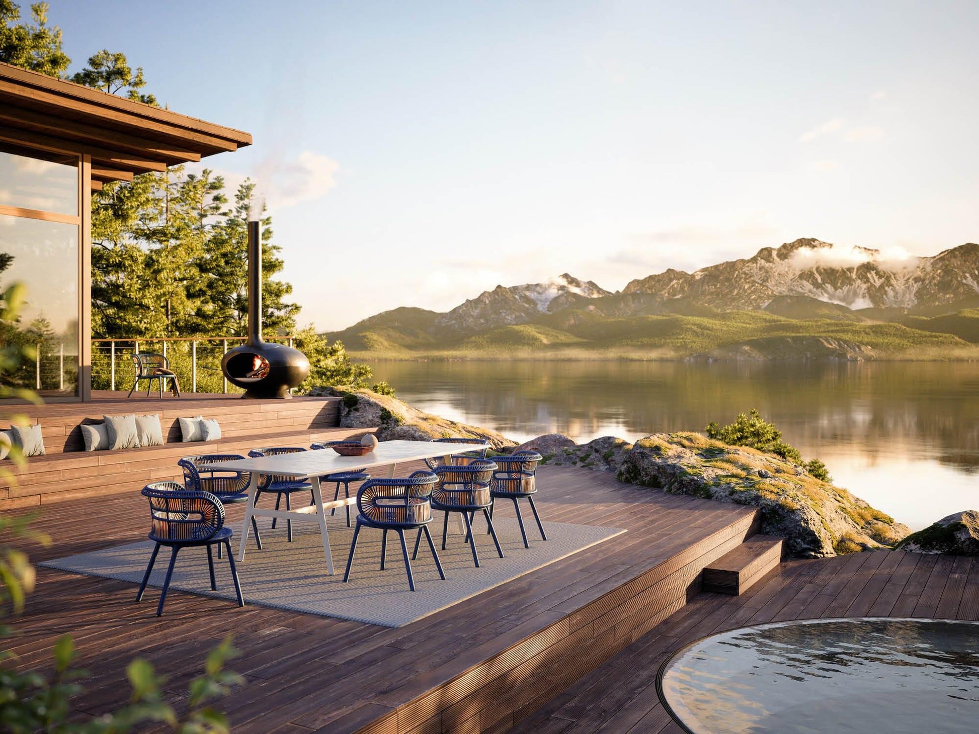 Son design unique, à la fois emblématique et séduisant, se caractérise par des formes arrondies et douces, de magnifiques motifs géométriques et des matériaux de haute qualité. Confectionnée en fibre synthétique d'une résistance et d'une durabilité inégalées, cette collection est conçue pour une utilisation extérieure tout au long de l'année.