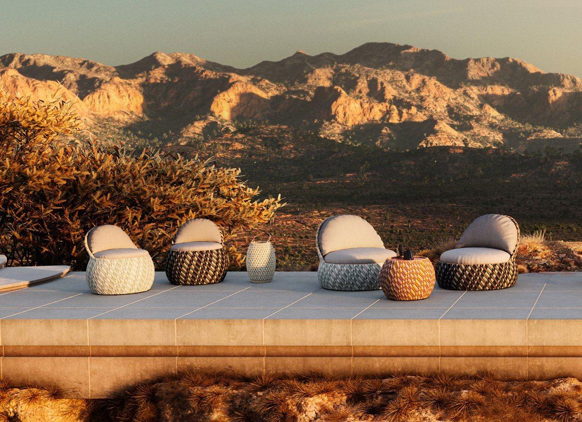 Alliant confort et structure, cette collection polyvalente de chaises, méridiennes, poufs, tables d'appoint et accessoires d'extérieur allie élégance et robustesse. Leurs structures légères se déplacent aisément autour de la piscine, tandis que les coussins confortables en tissu d'extérieur de haute qualité offrent un confort optimal même en plein soleil ou sous une pluie battante. Le tabouret, quant à lui, incarne un luxe décontracté avec son motif à rayures séduisant, disponible en cinq coloris.