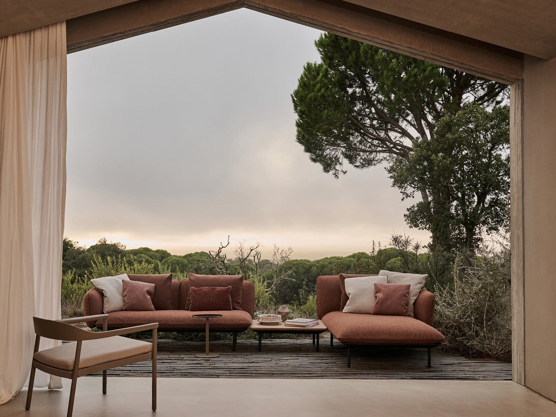 Ce mobilier réinvente les lignes scandinaves classiques avec des matériaux modernes pour un aménagement extérieur réussi. L'aluminium sculpté imite la chaleur du bois, passant avec fluidité d'angles nets à des courbes douces. La table à manger, en aluminium ou en teck, conserve une élégance sobre et épurée, tandis que le système de pompe breveté de la chaise longue permet un réglage aisé, alliant innovation et confort intemporel.