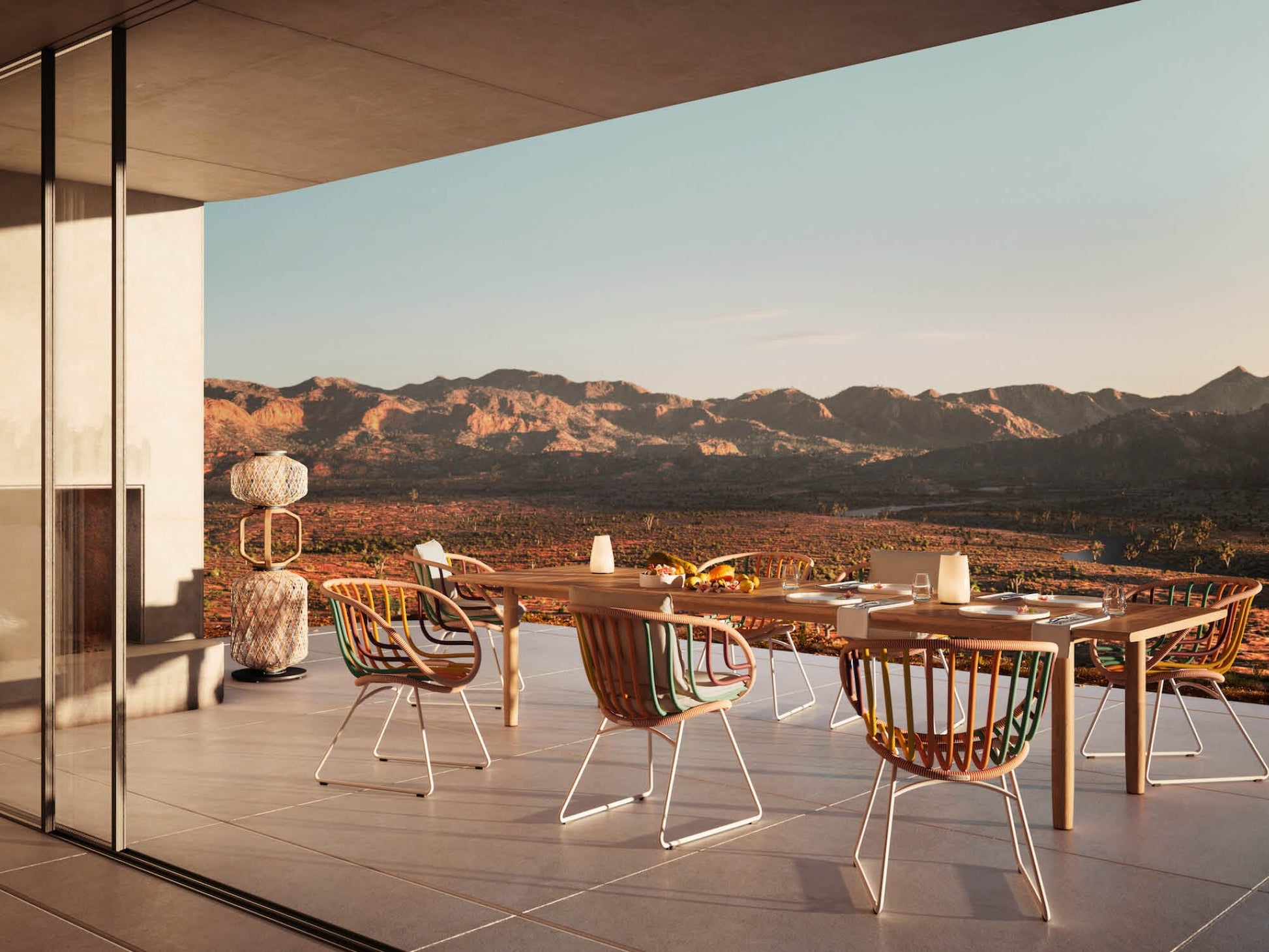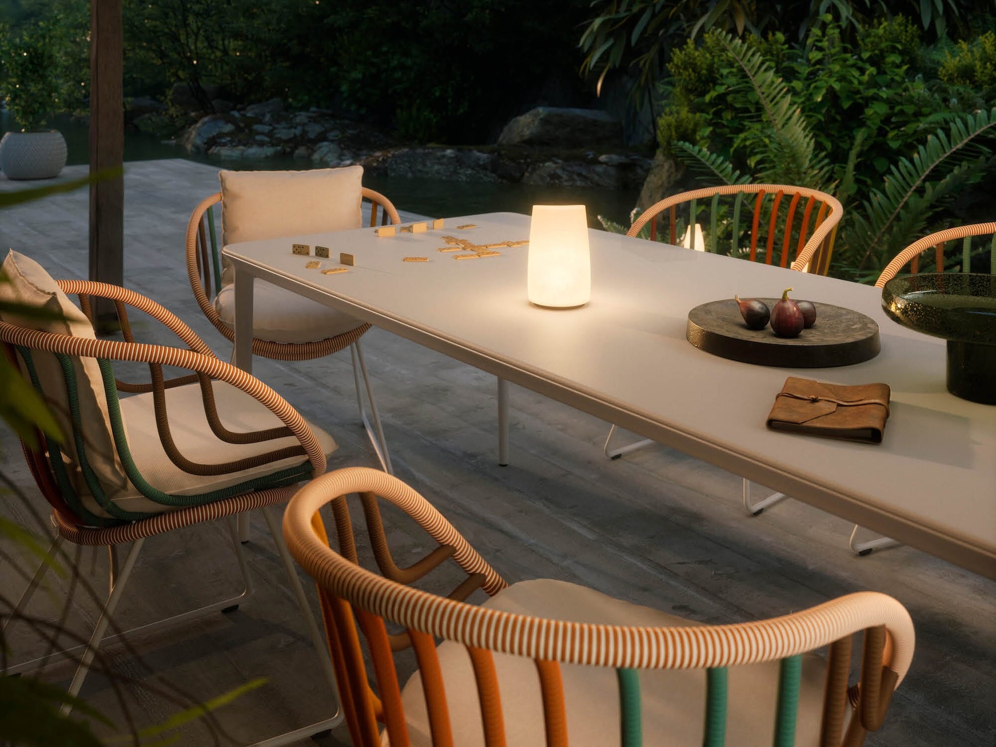 Elle présente une forme organique en forme de berceau, ouverte, aérée, légère et accueillante.