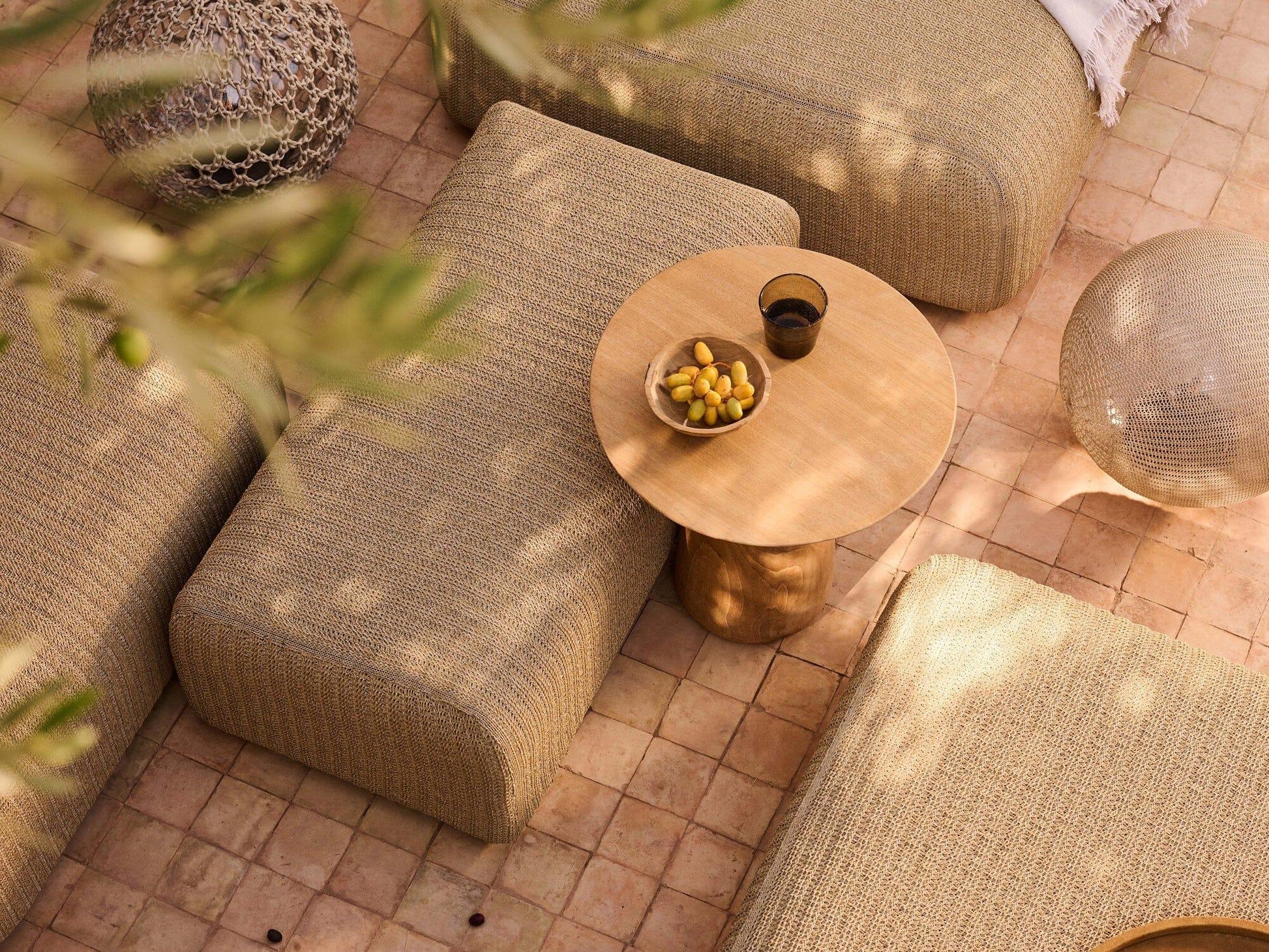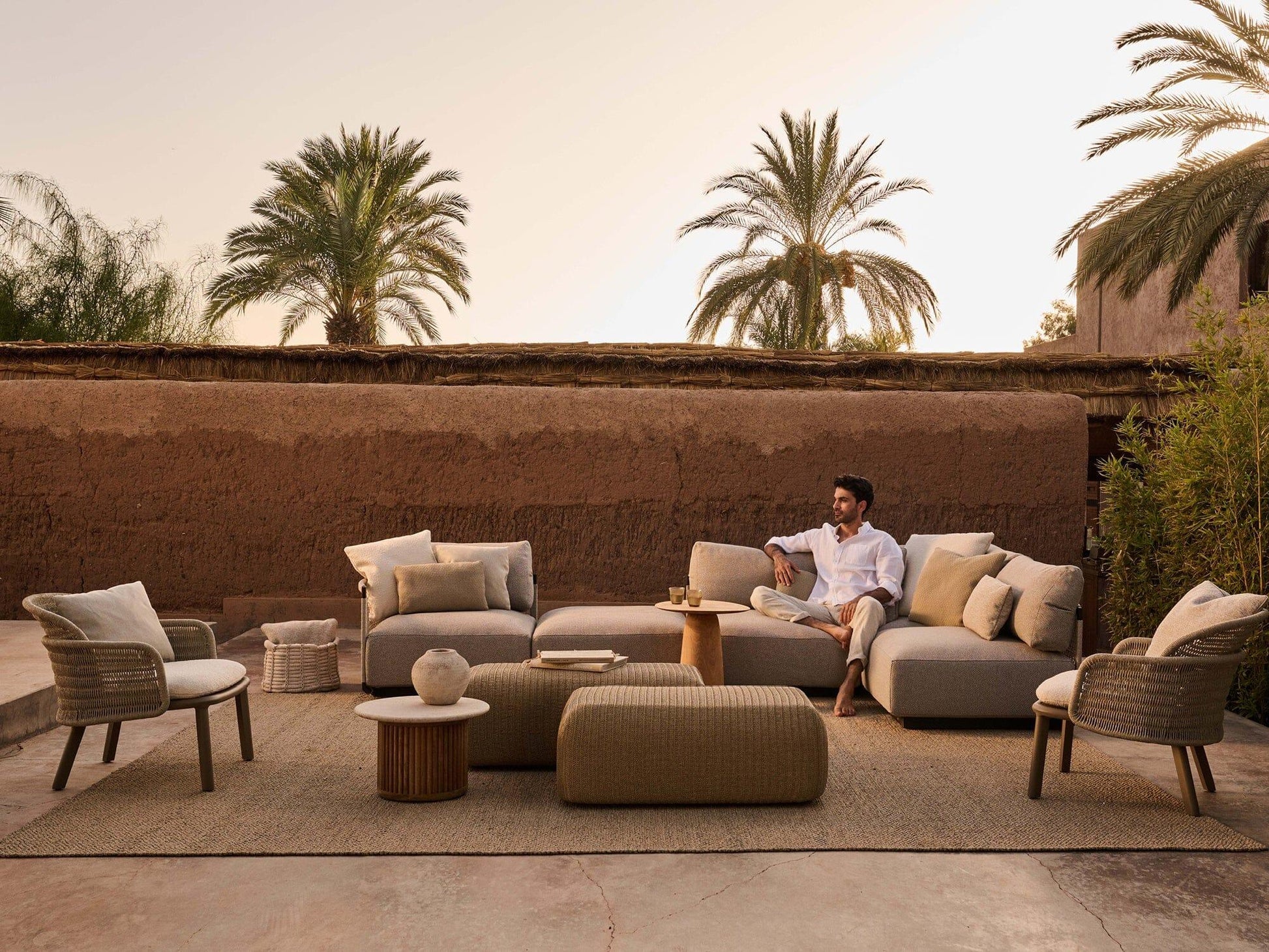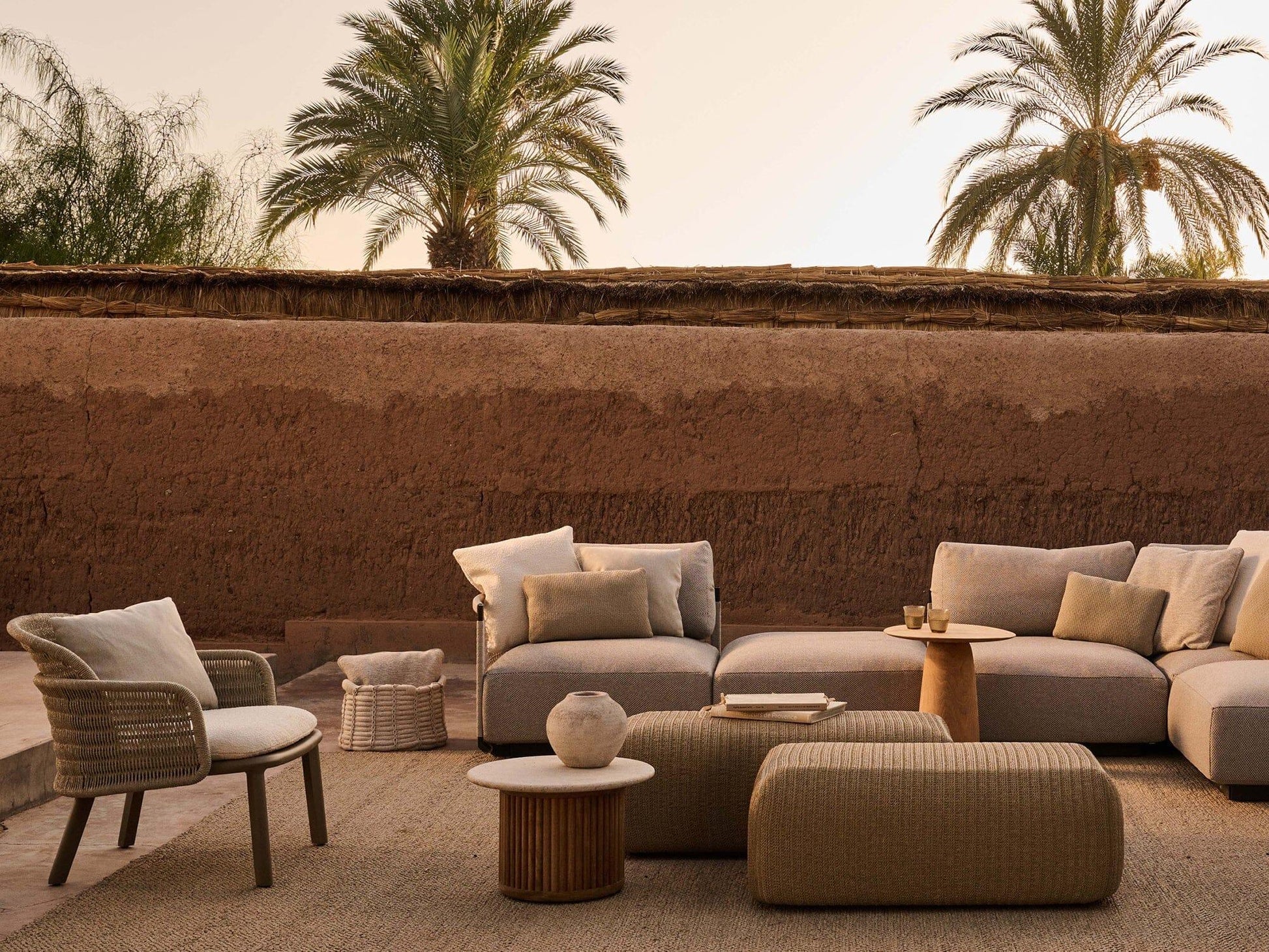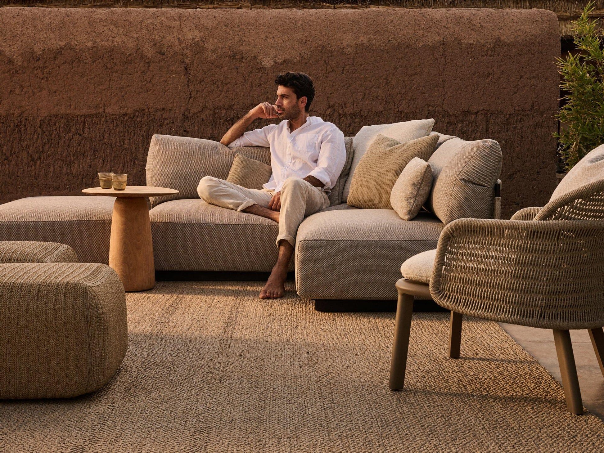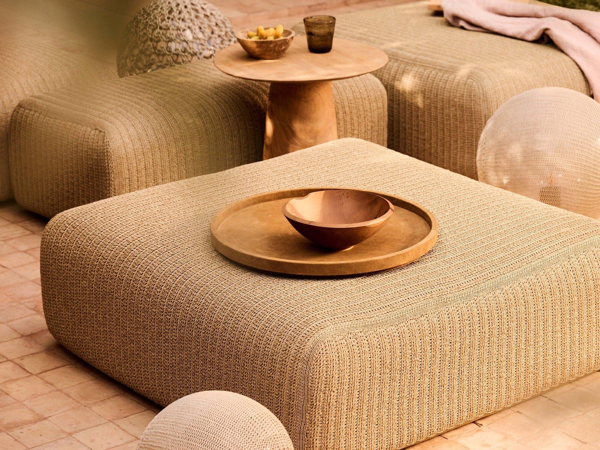 La structure organique de cette collection entièrement tricotée trouve son origine dans une philosophie de conception visant à créer un lien intense entre l'homme et la nature, en intégrant des éléments naturels dans le design.