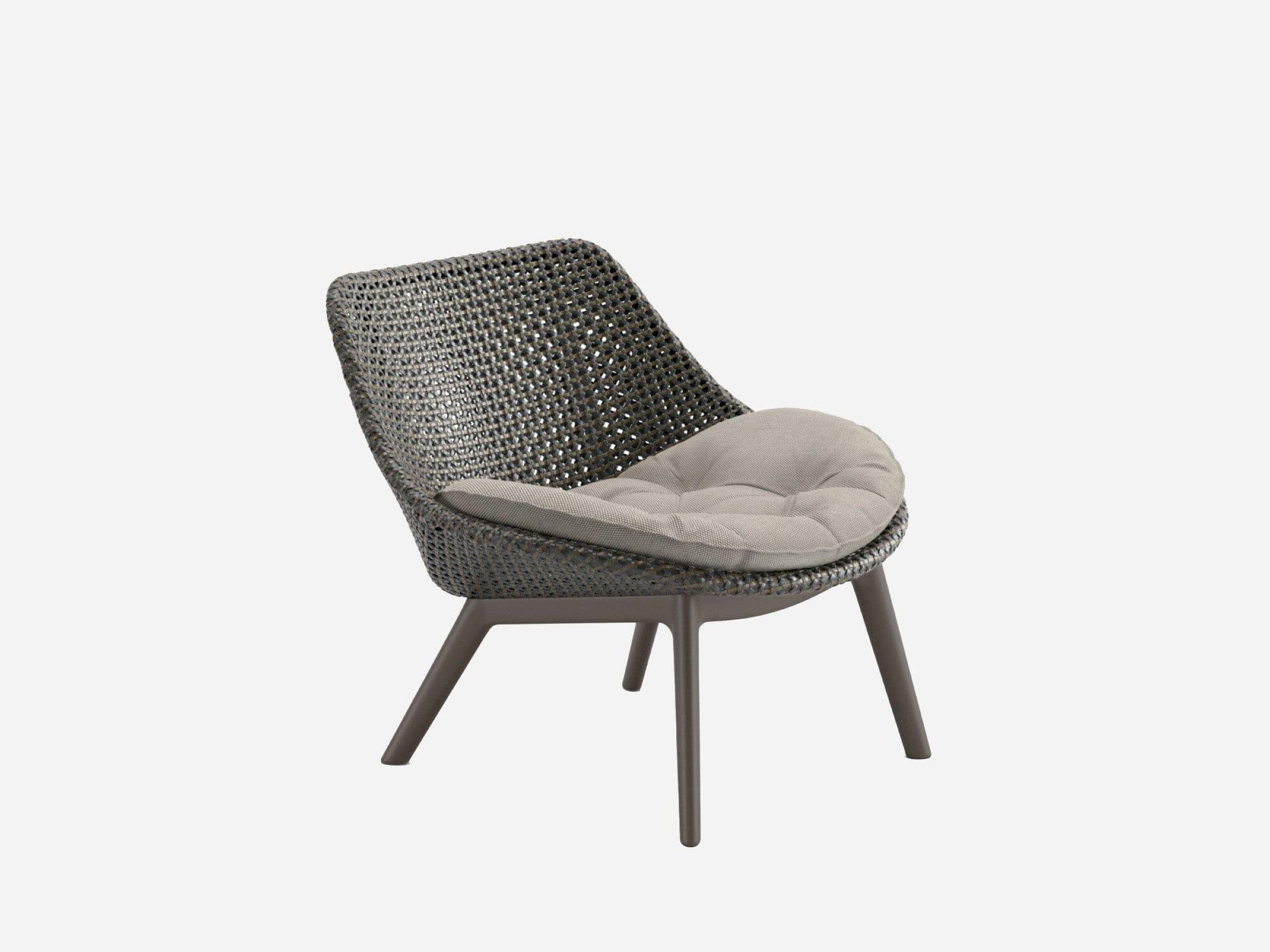 Un piètement optionnel en aluminium moulé sous pression, disponible pour les fauteuils, les fauteuils à oreilles, les chaises longues et les repose-pieds assortis, élargit encore davantage le langage visuel de cette collection maintes fois primée.