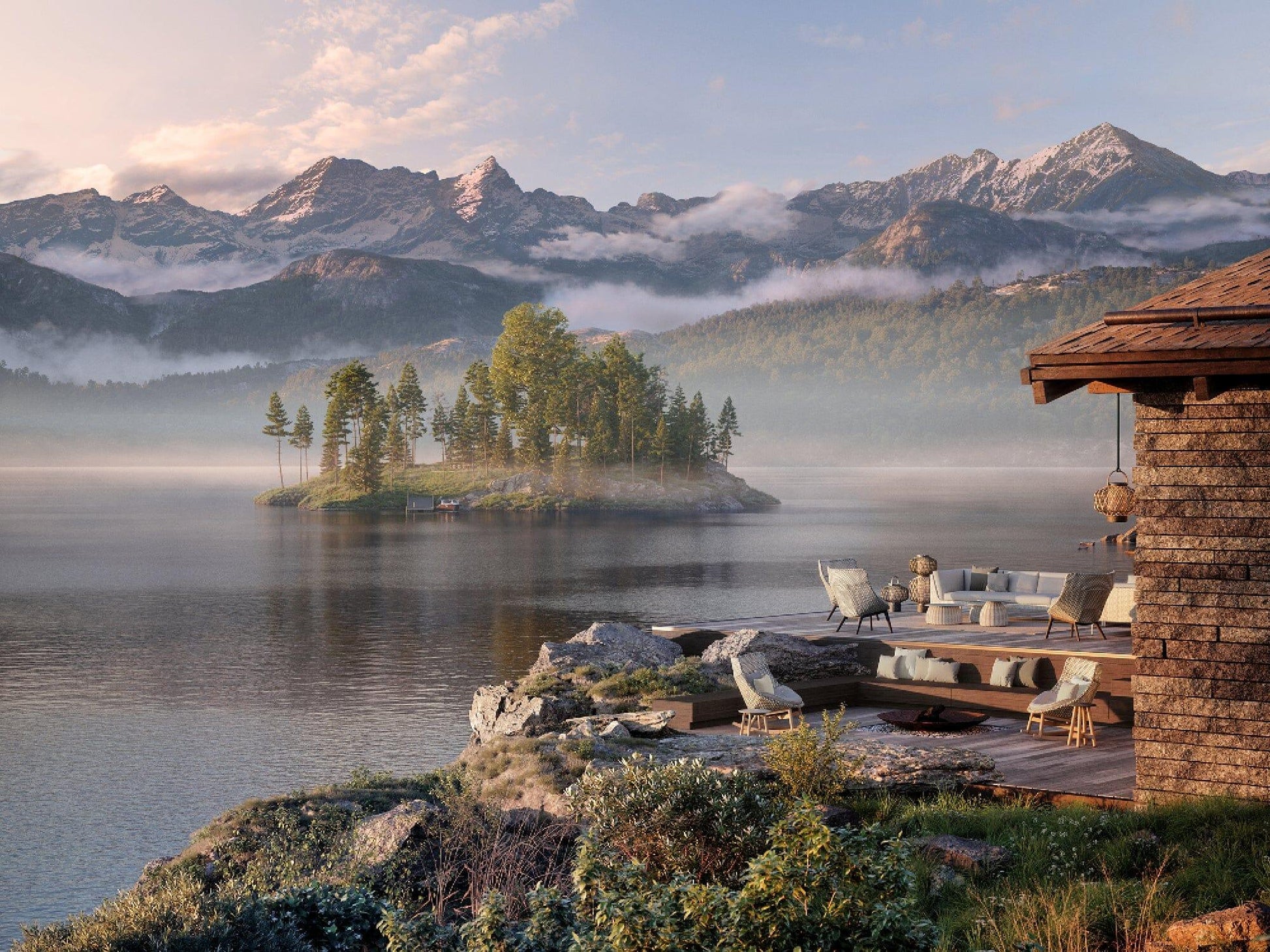 Des formes organiques et un mélange moderne de fibres tissées et de teck caractérisent cette collection maintes fois primée. Un piètement optionnel en aluminium moulé sous pression, disponible pour les fauteuils, les fauteuils à oreilles, les chaises longues et les repose-pieds assortis, enrichit encore davantage l'esthétique de ce mobilier.