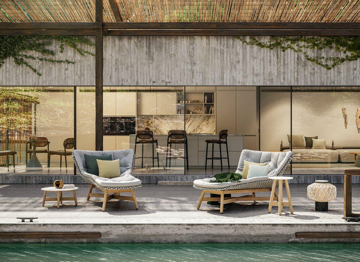 Apportant au bord de la piscine les formes, la sensibilité et le mélange de matériaux de la populaire collection de mobilier d'extérieur MBRACE, le lit de jour MBRACE enveloppe le corps d'un confort douillet tout en offrant une durabilité exceptionnelle.
