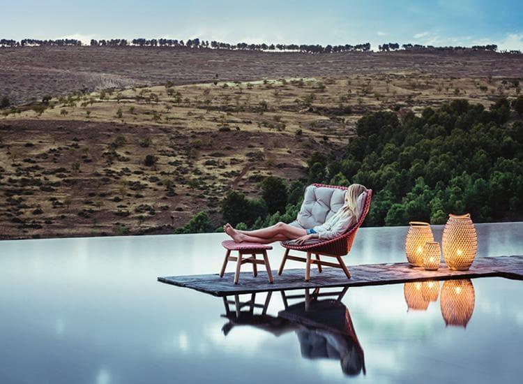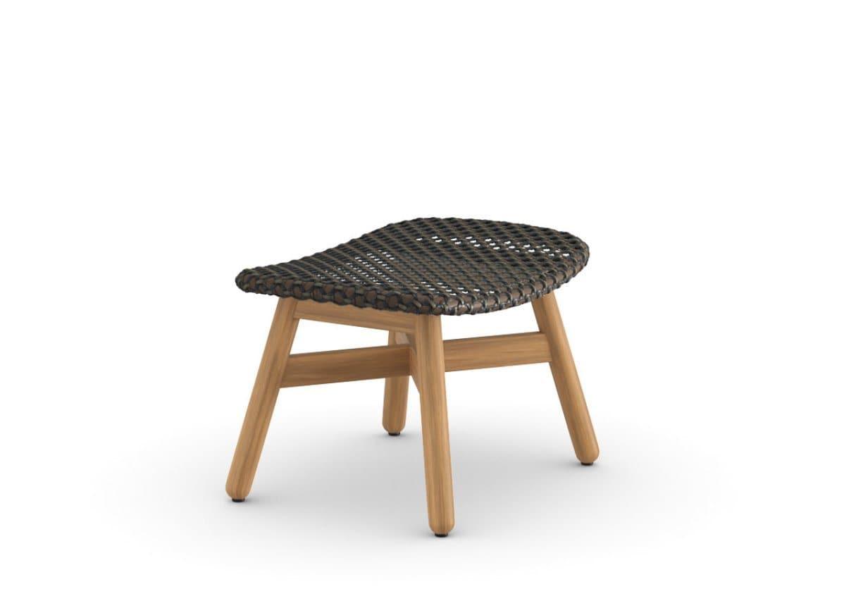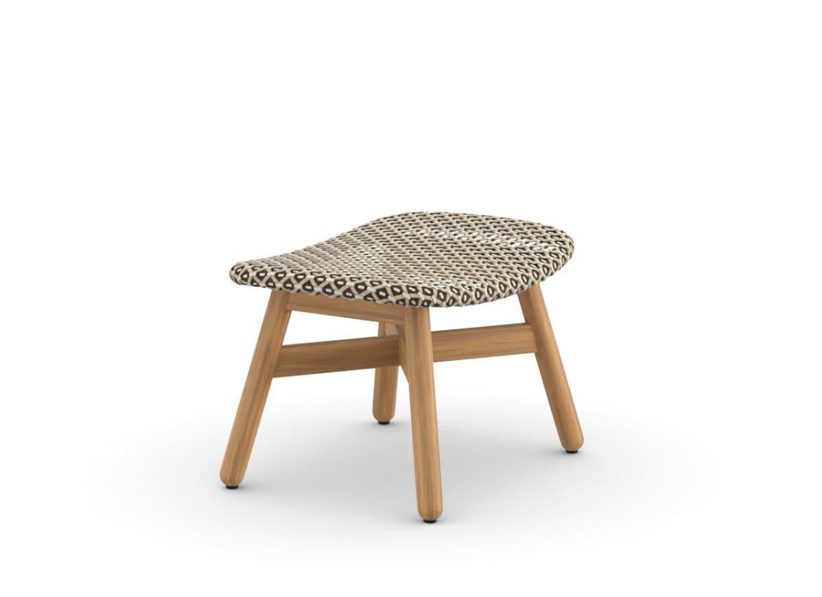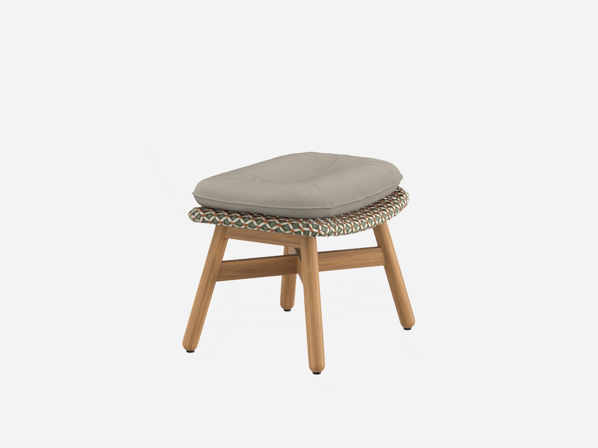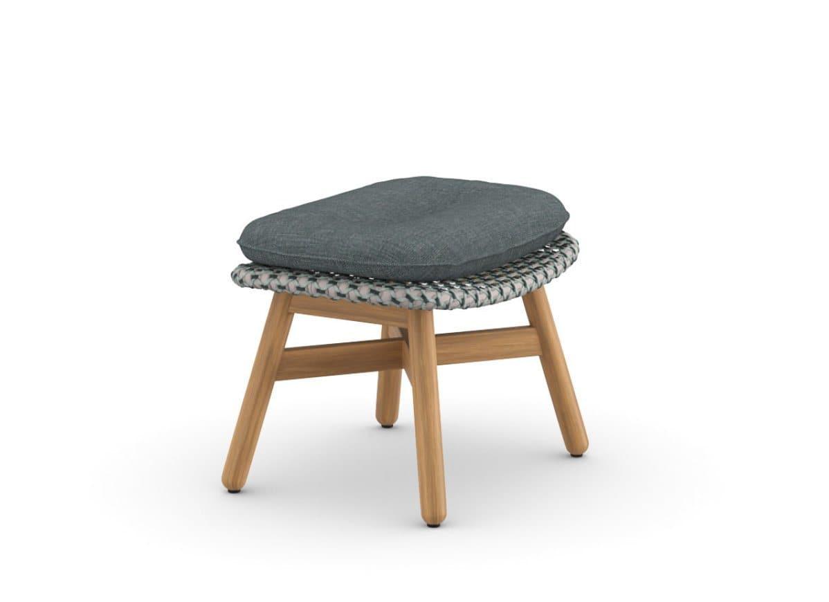 Le repose-pieds est doté d'une assise en tissu ajouré triaxial et d'une base en teck massif. L'accessoire d'extérieur idéal après une longue journée de travail.