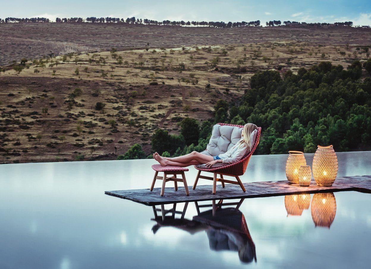 Sur la véranda ou au bord de la piscine, le fauteuil à bascule à dossier haut vous invite à la détente en plein air et à profiter du grand air. Véritable pièce maîtresse dans n'importe quel intérieur, il deviendra sans aucun doute le siège préféré de la maison.