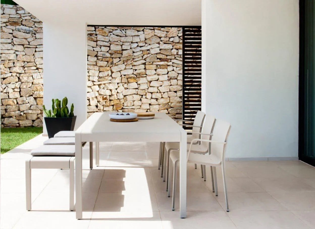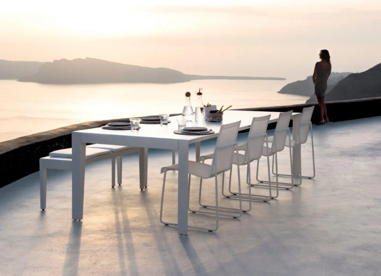 Ces bancs d'extérieur en aluminium allient un style minimaliste à une touche ludique, possédant les caractéristiques essentielles du mobilier : des lignes élégantes et épurées et un classicisme intemporel. Fabriqués en tôle d'aluminium thermolaquée de 6 mm d'épaisseur, ces bancs sont durables, faciles d'entretien et entièrement recyclables, ce qui les rend idéaux pour un usage extérieur.