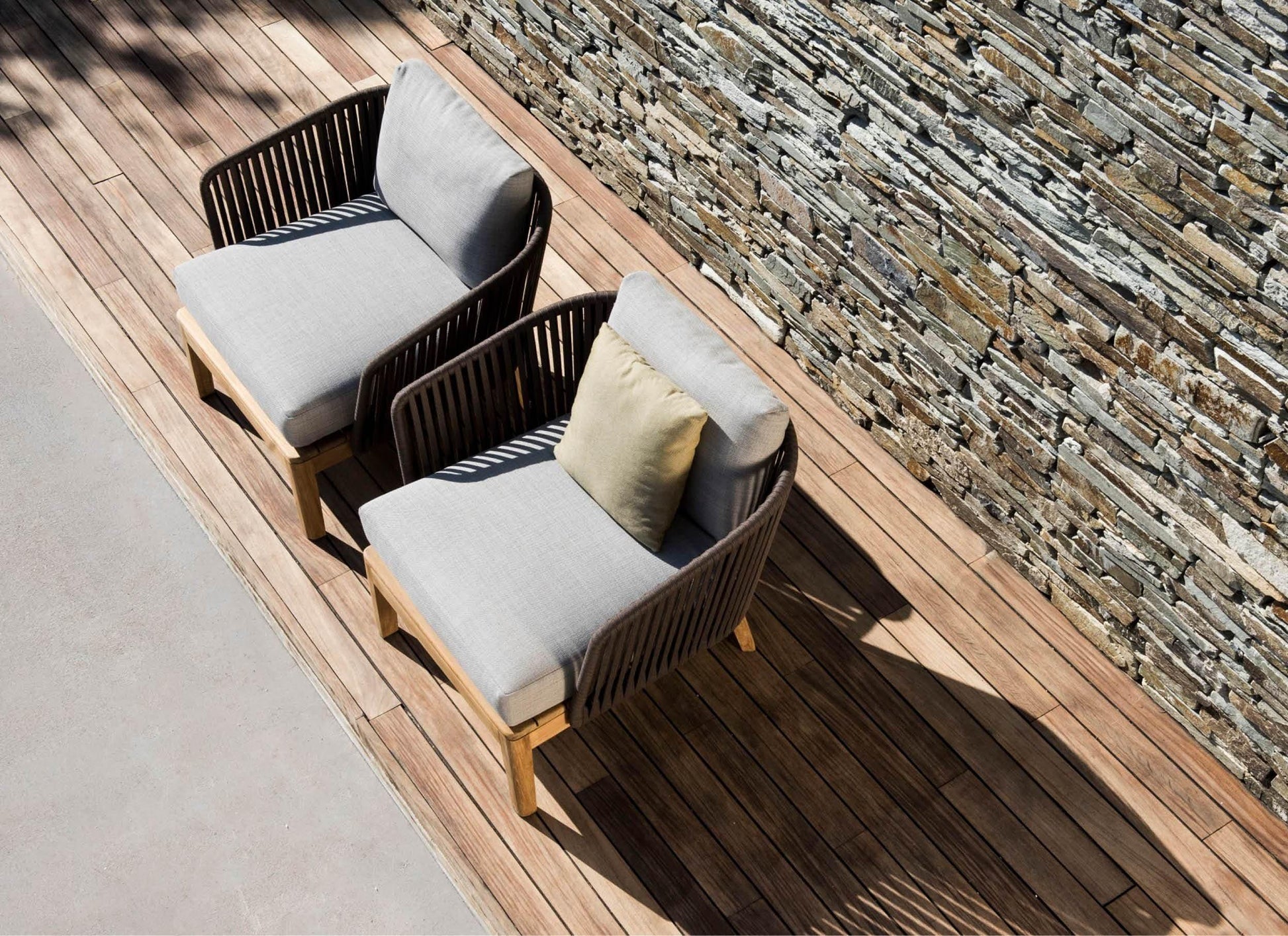 Cette gamme de canapés, écologique et imperméable, est un véritable exemple de design innovant. L'ingénieuse combinaison de teck et de fil crée une atmosphère naturelle et confortable, véritablement rafraîchissante.