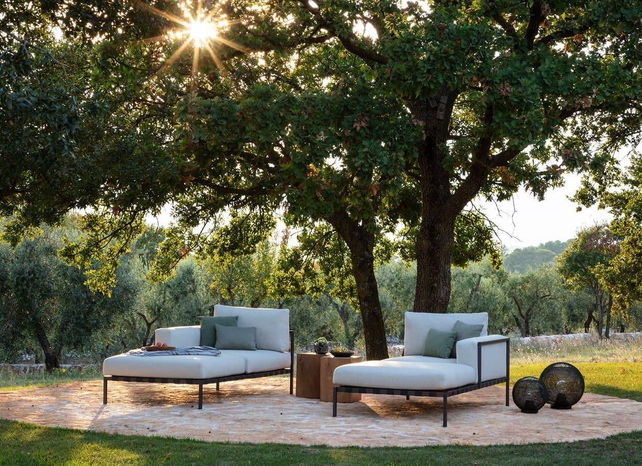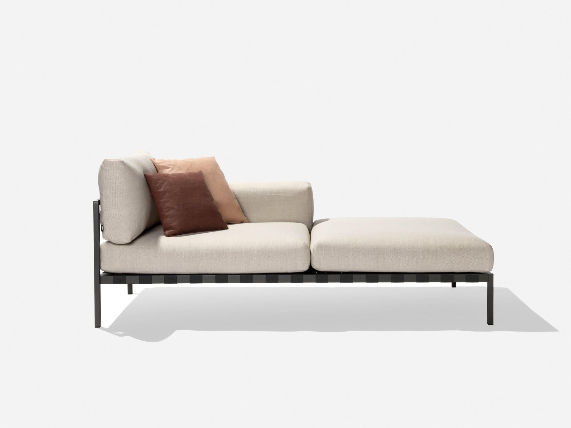 Les magnifiques et accueillantes chaises longues Natal Alu Meridiennes sont dotées d'une structure en aluminium discrète, qui contraste joliment avec des coussins confortables à séchage rapide pour des moments de détente luxueux en extérieur.