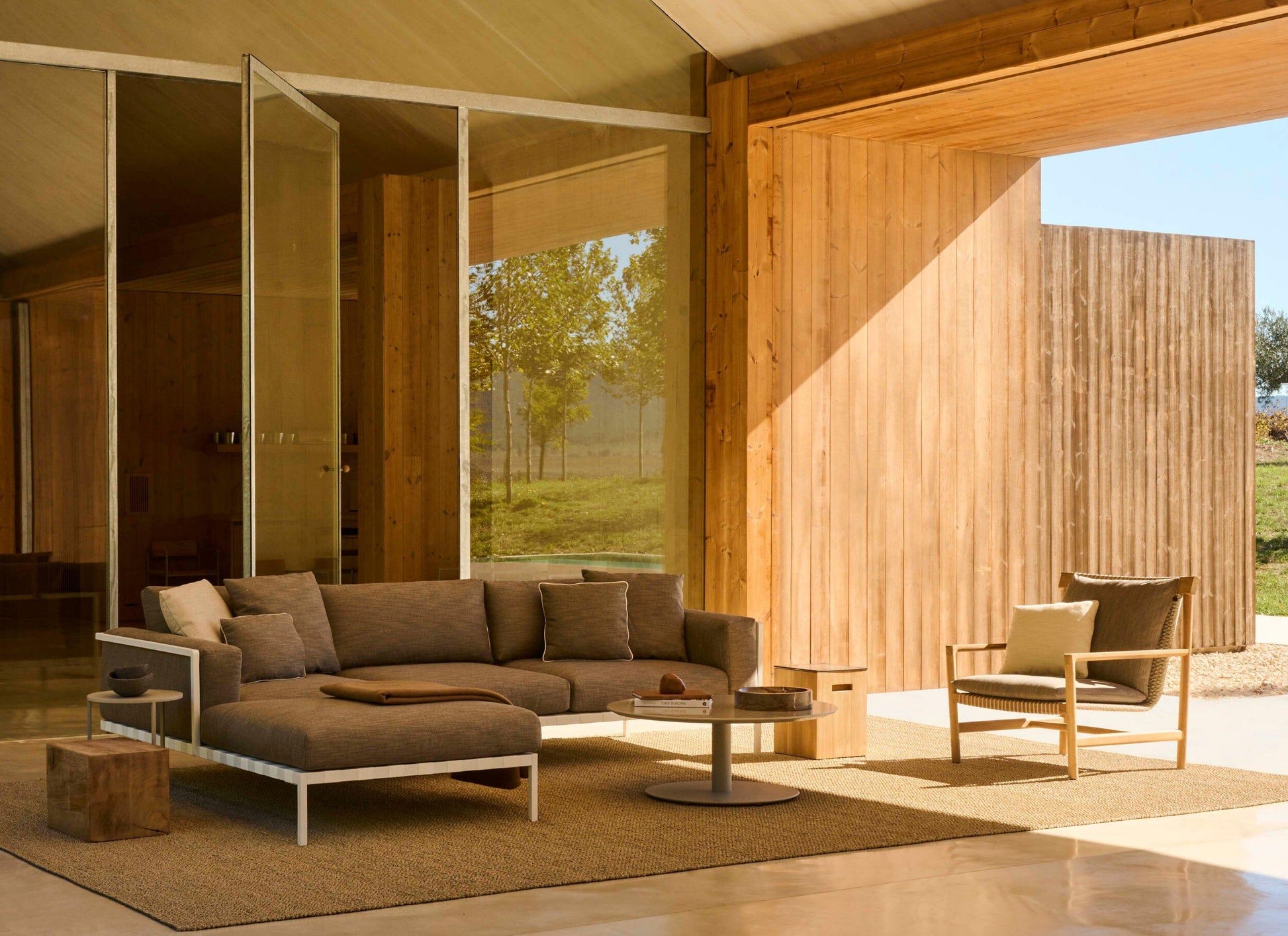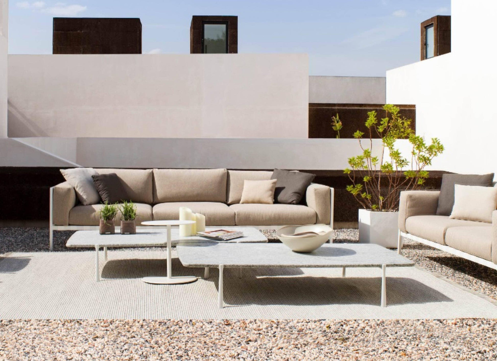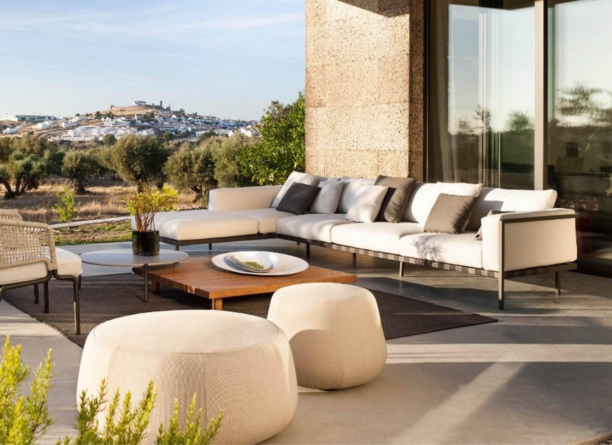 Une attention particulière est portée aux coussins d'extérieur, conçus pour rester dehors pendant toute la saison. Leur garnissage ventilé sèche rapidement et est résistant à l'eau. Toutes les housses sont confectionnées dans un tissu d'extérieur haut de gamme, garanti contre la décoloration et la détérioration.