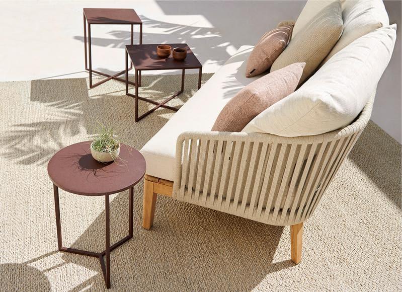 Ces nouvelles tables basses allient fonctionnalité et design contemporain discret. Les lignes épurées du piètement en croix et les angles biseautés témoignent d'un souci du détail remarquable. Disponibles en quatre coloris et dimensions, ces tables multifonctionnelles s'intégreront parfaitement à tout espace extérieur.