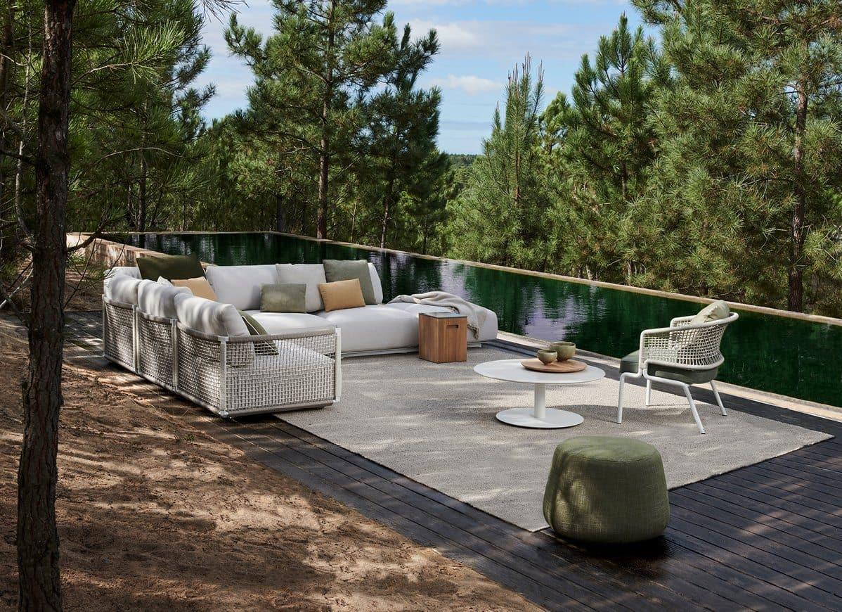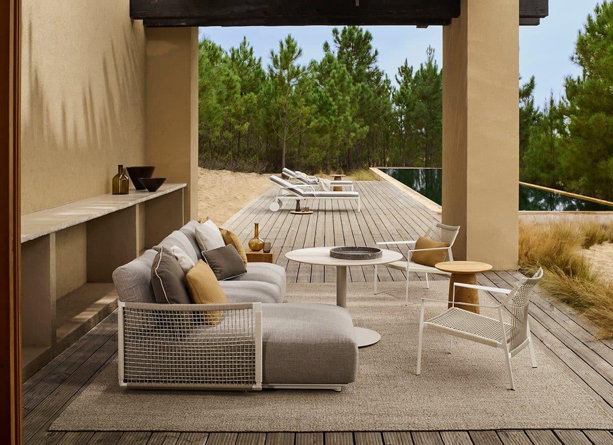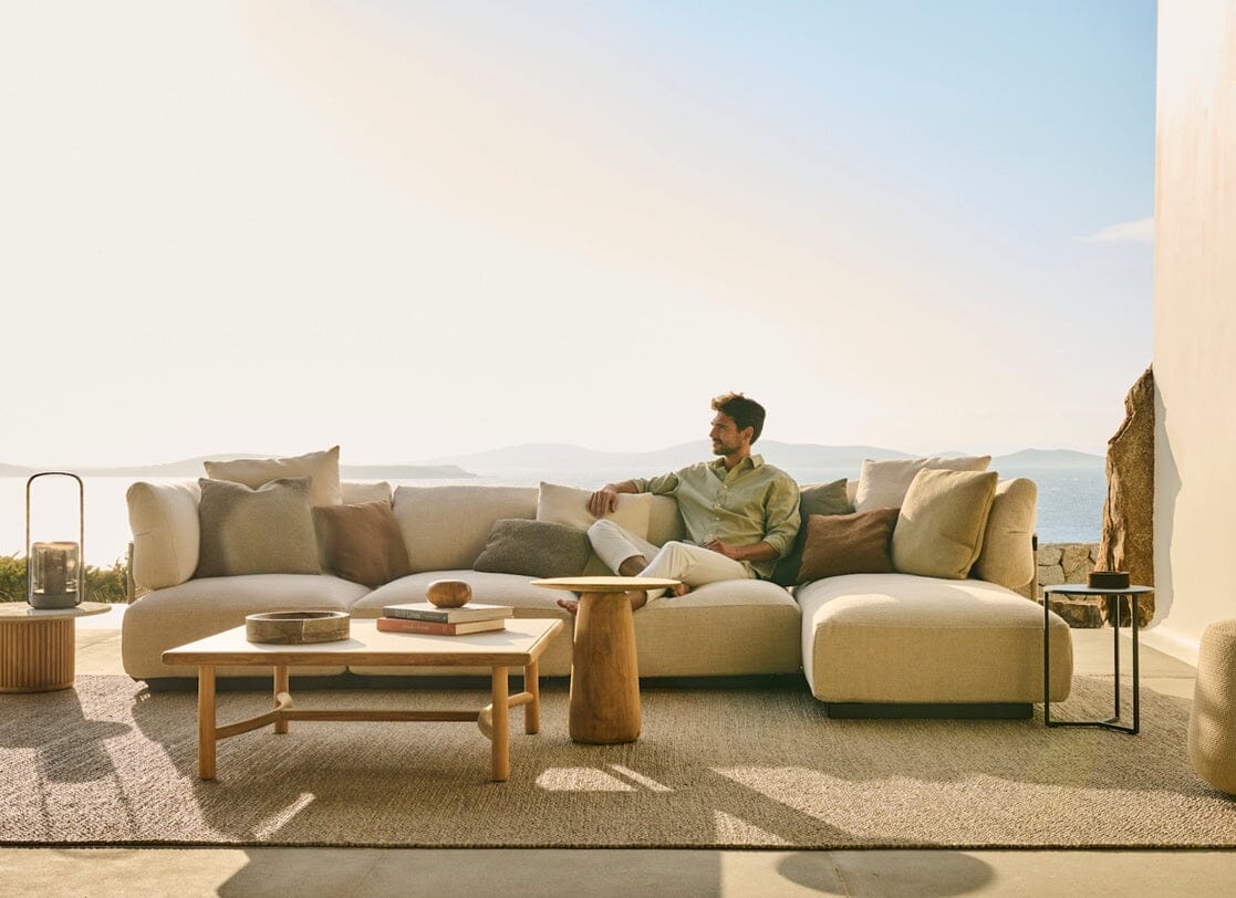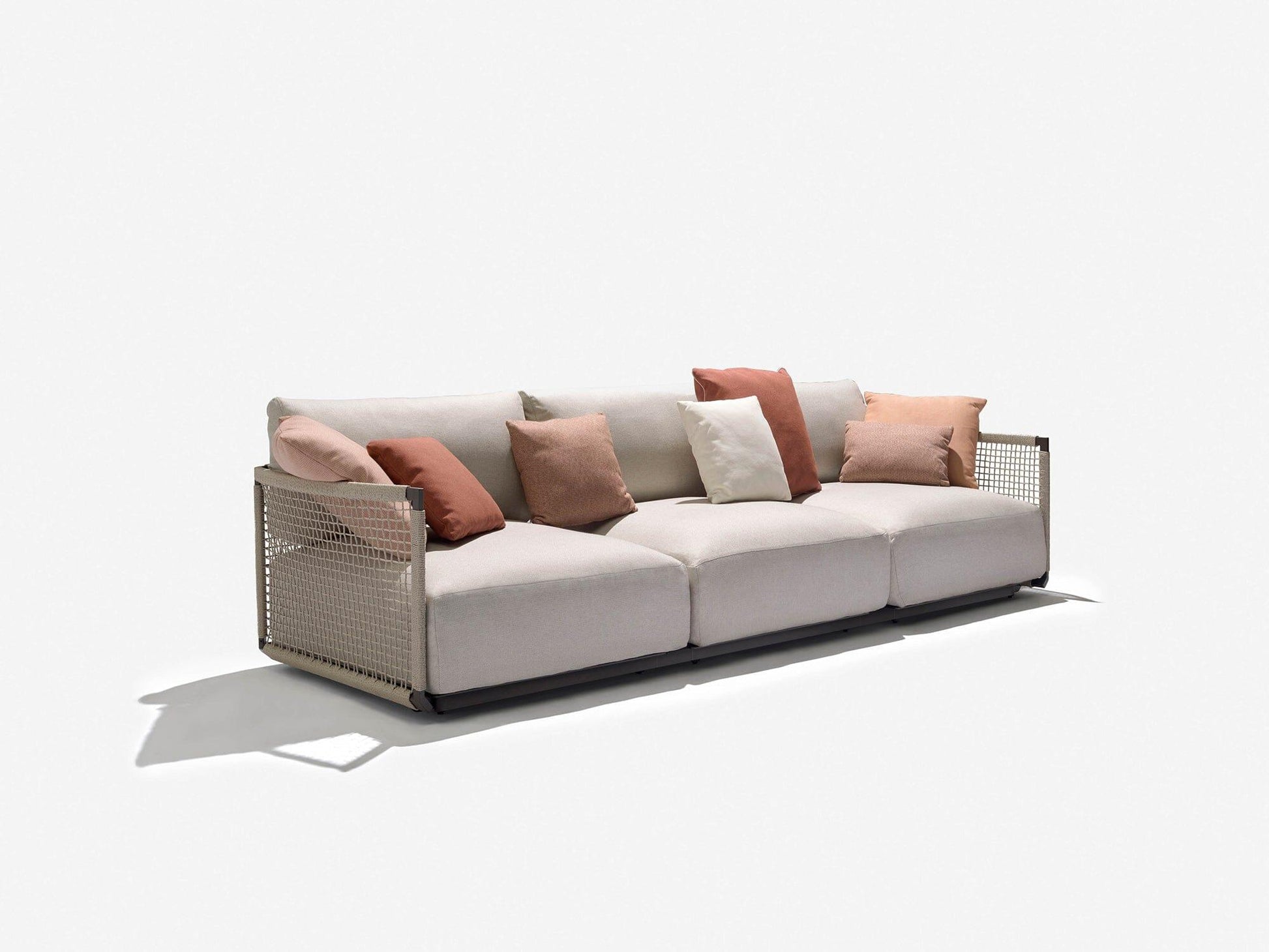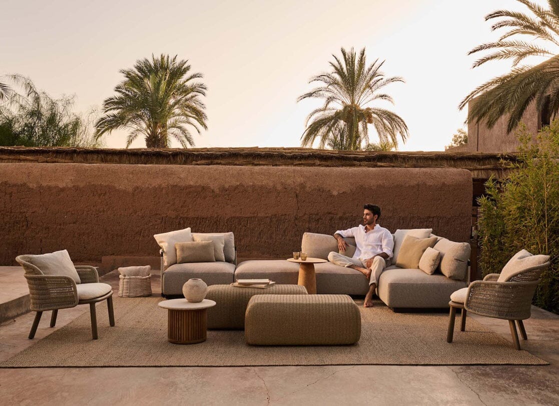 Ce canapé dégage une impression de légèreté et un charme architectural grâce à la courbe naturelle de sa structure et à son tressage ajouré. Son rembourrage de coussins d'extérieur, extra-doux et aéré, lui confère un confort exceptionnel, et il est particulièrement adaptable grâce à ses trois configurations d'assise et ses quatre profondeurs d'assise.