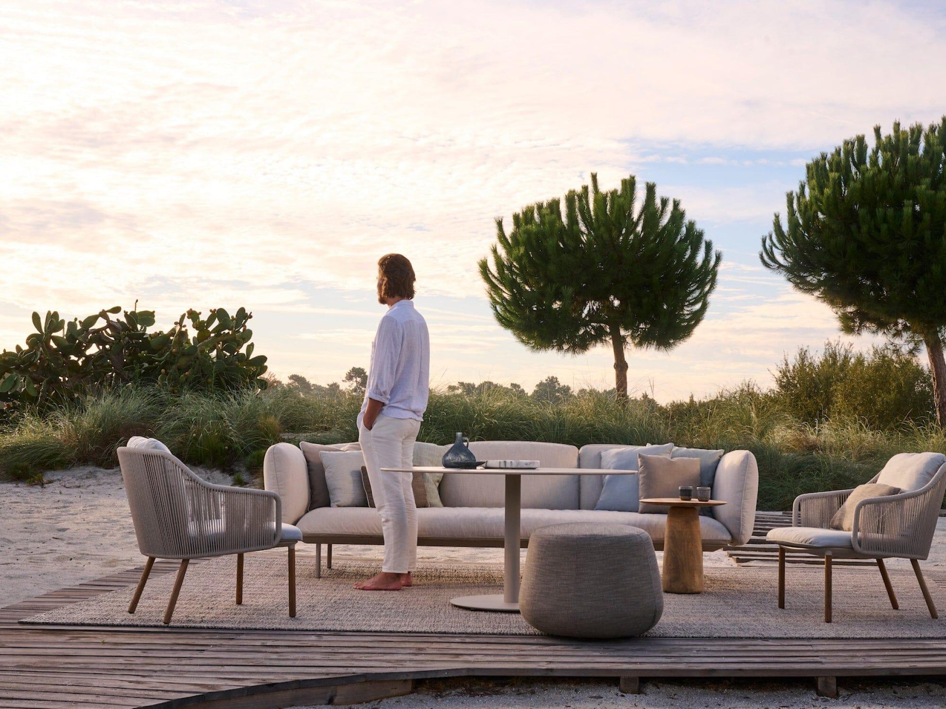Détendez-vous dans une collection qui allie confort et polyvalence. Le fauteuil combine un design léger avec un soutien doux et ergonomique grâce à son dossier. Le fauteuil lounge se distingue par une assise extra-profonde et un dossier plus large pour un confort absolu. La chaise longue est dotée de coussins volumineux pour un confort optimal et peut être agrémentée d'une table d'appoint en teck sur toute sa longueur.