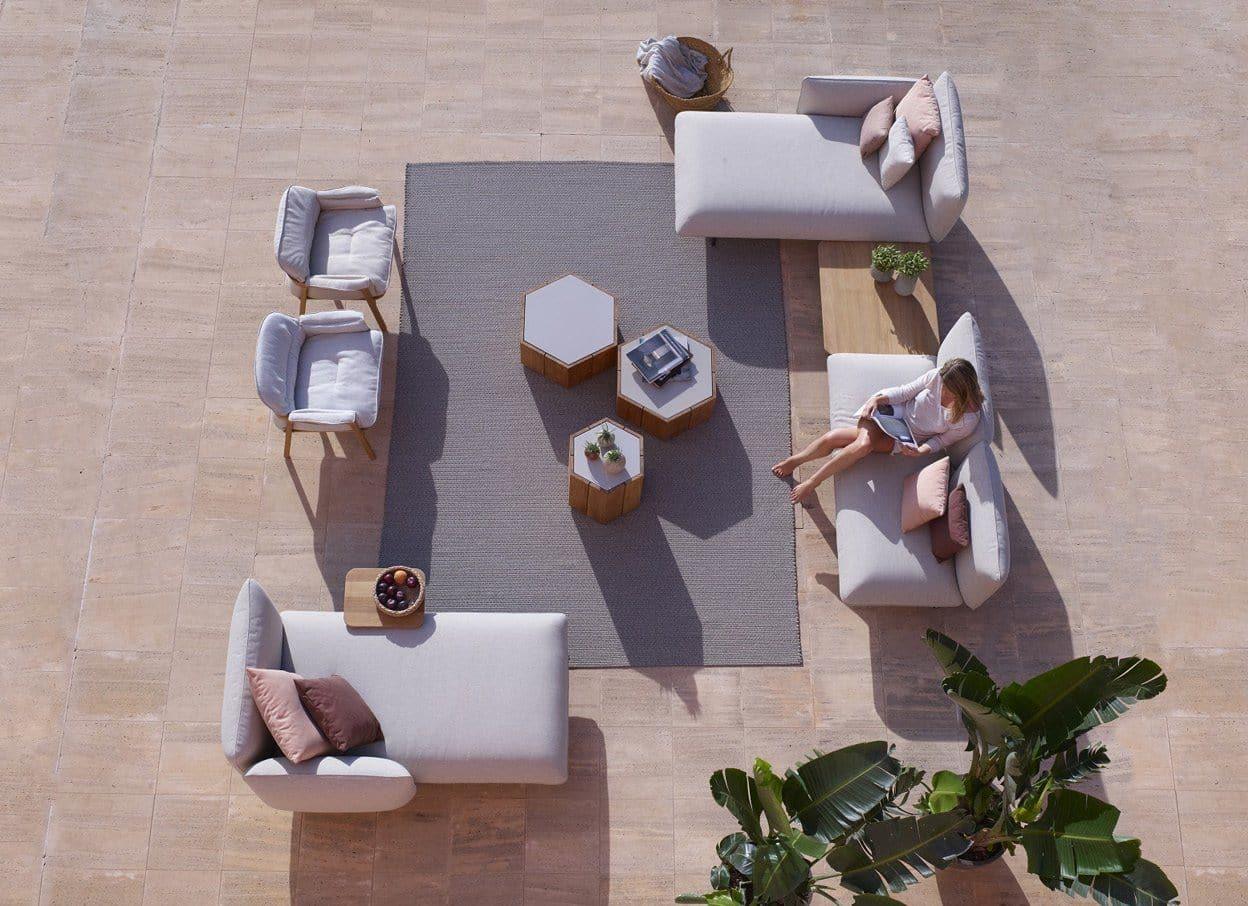 Installez-vous confortablement et détendez-vous sur le canapé modulable Senja Meridienne. Senja est proposé avec des coussins standards et extra-profonds. Leur généreux garnissage leur confère une forme harmonieuse et organique, rehaussée d'une couture passepoilée. La structure en aluminium thermolaqué, disponible en lin ou wengé, est proposée avec des pieds en teck ou en aluminium assorti.
