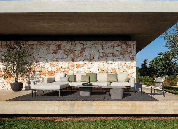Matériaux : Béton éclairci traité avec un conditionneur incolore qui minimise l'absorption d'humidité et de taches, assurant un séchage rapide après une période pluvieuse.