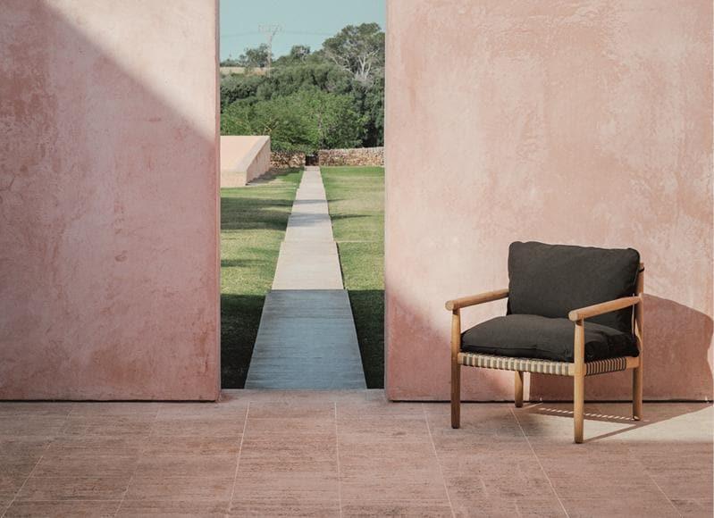 Matériaux : Structure en teck de première qualité, fibres synthétiques tissées pour l'assise et les coussins d'extérieur.