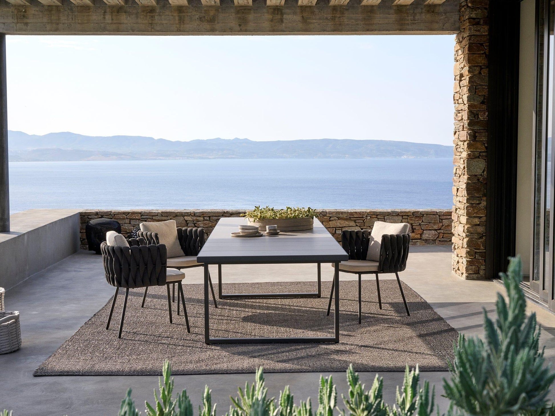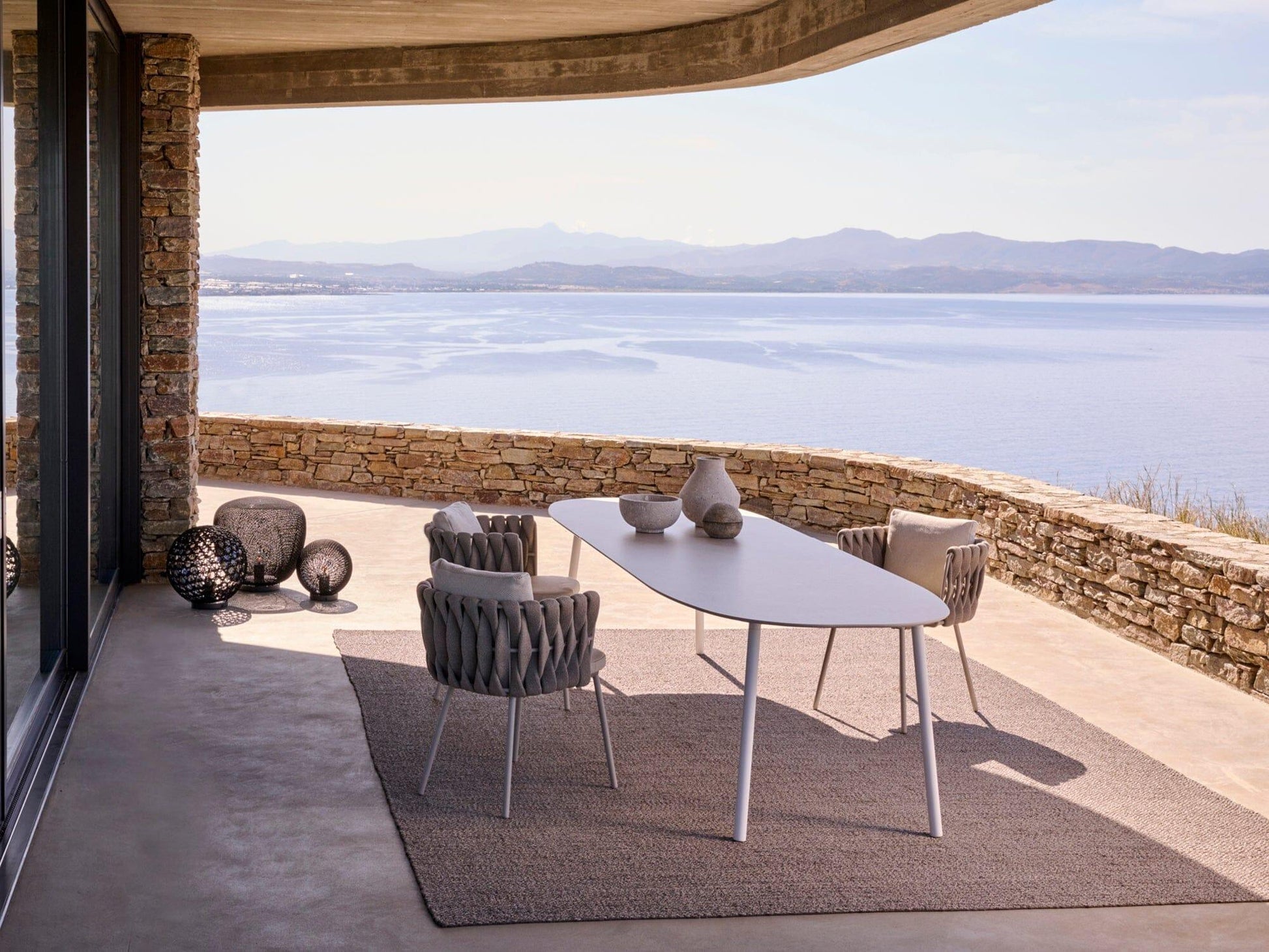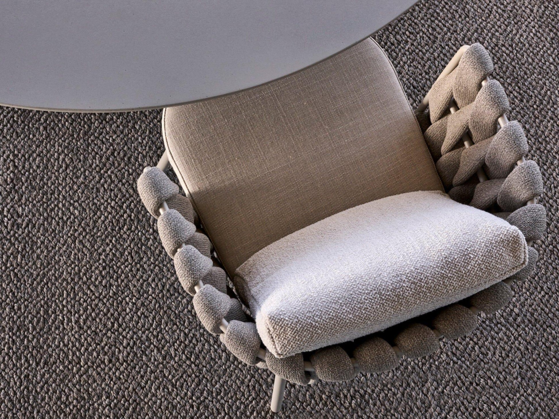 Elle présente des formes arrondies, des pieds fuselés et une élégante coque d'assise avec un tressage extra-large.