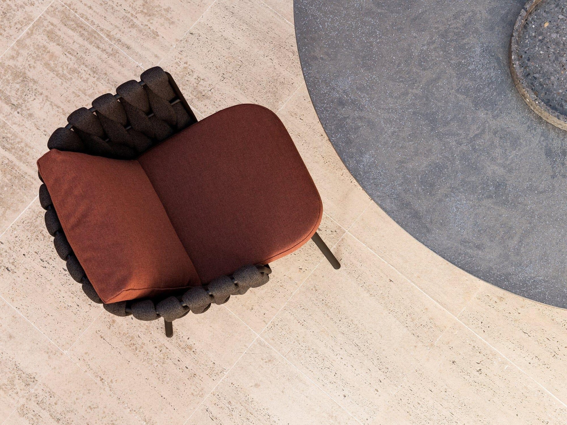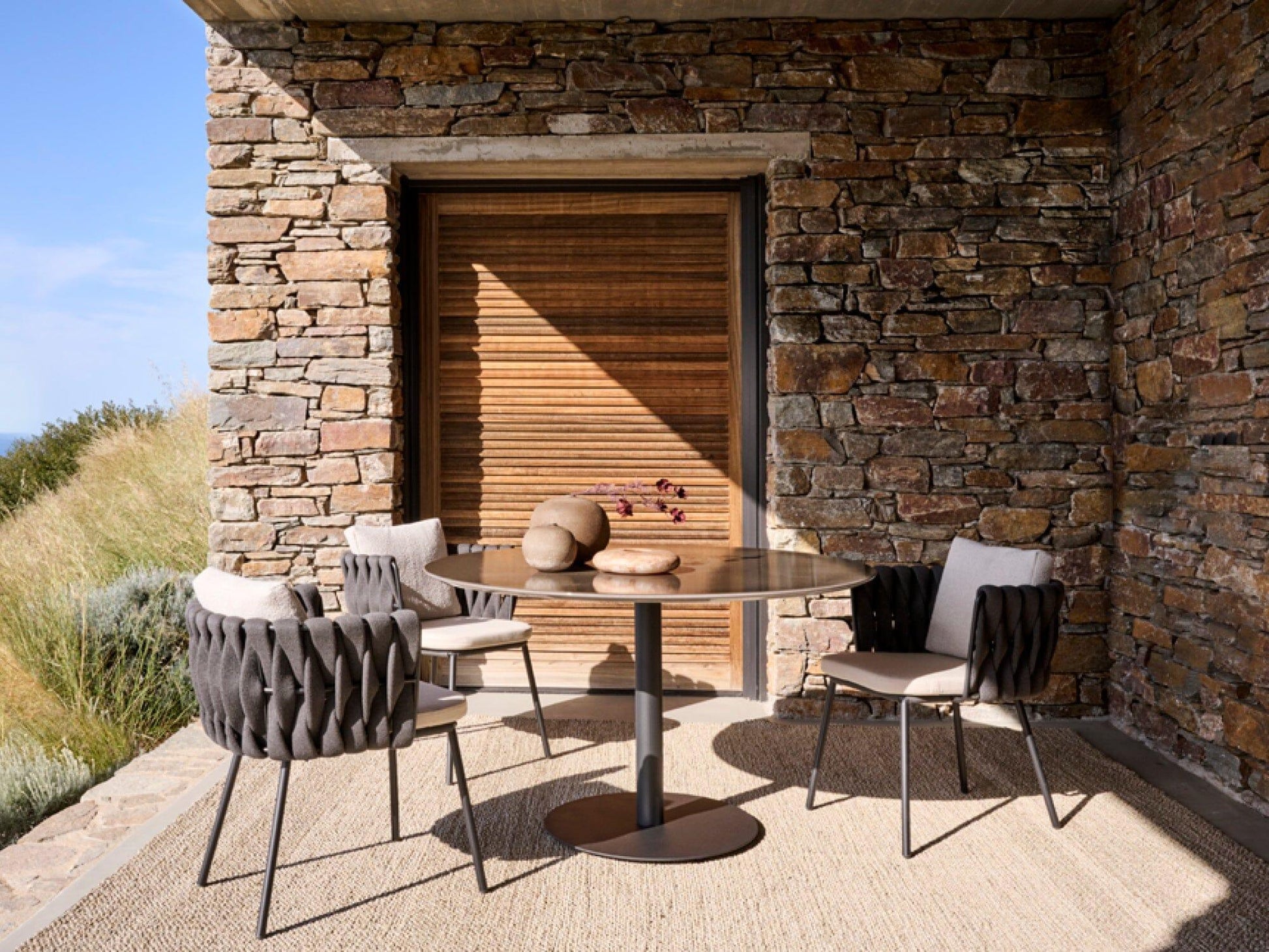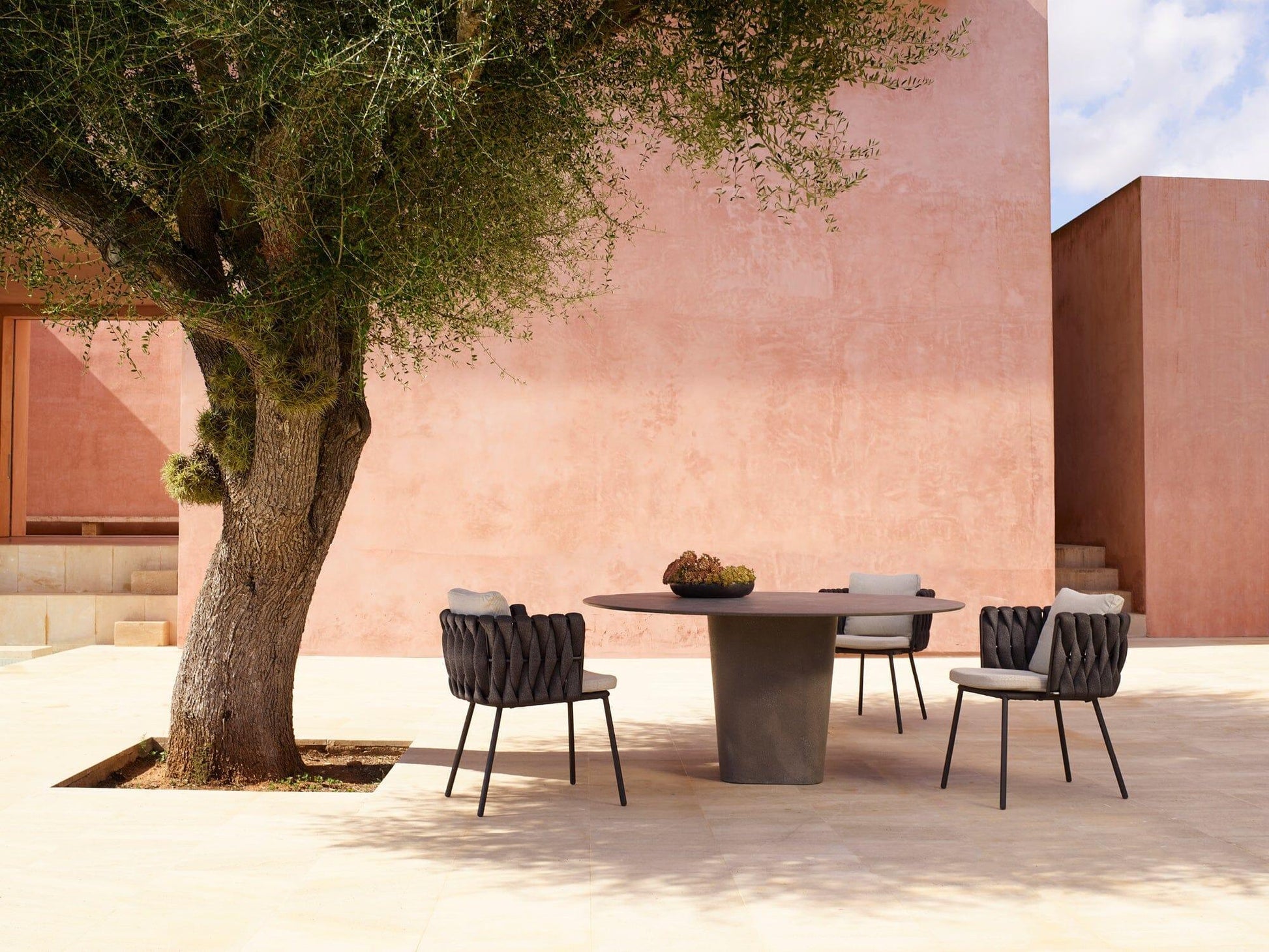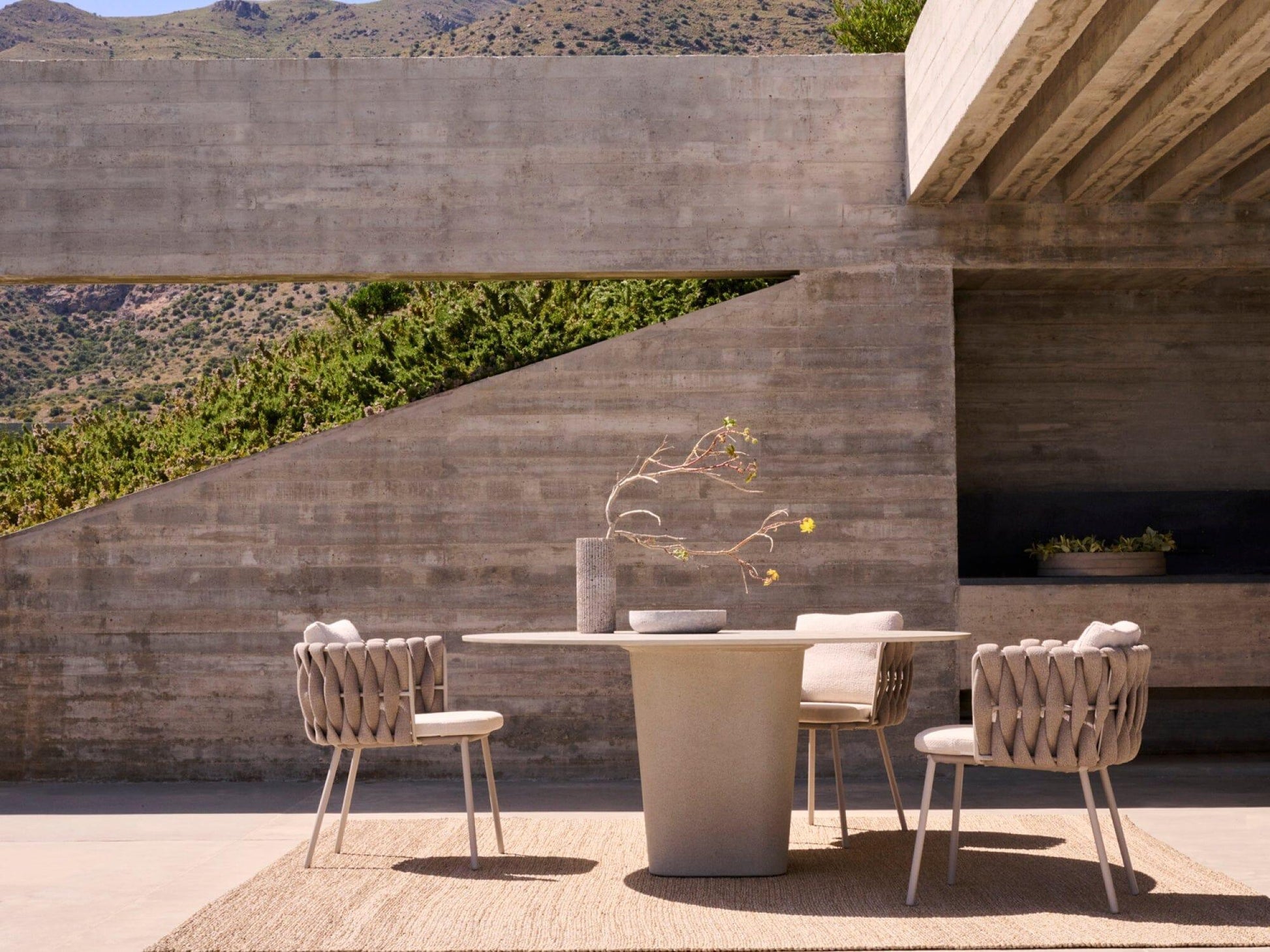 Elle présente des formes arrondies, des pieds fuselés et une élégante coque d'assise avec un tressage extra-large.