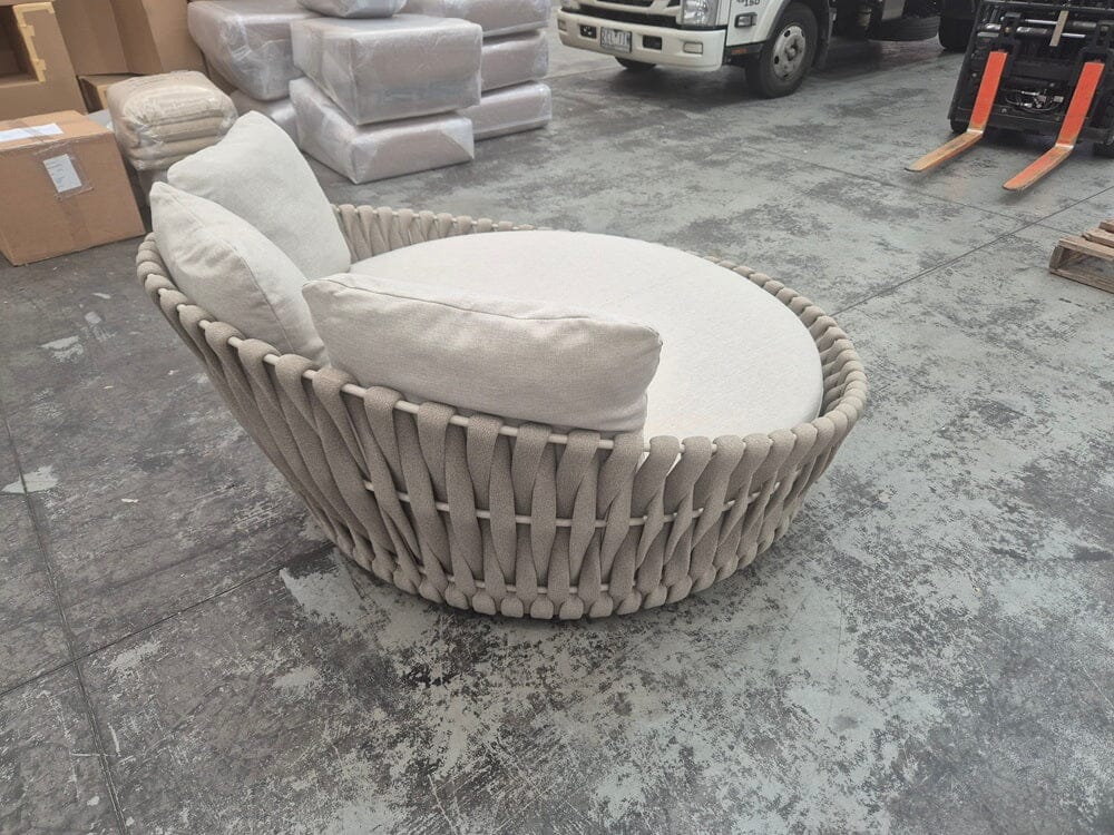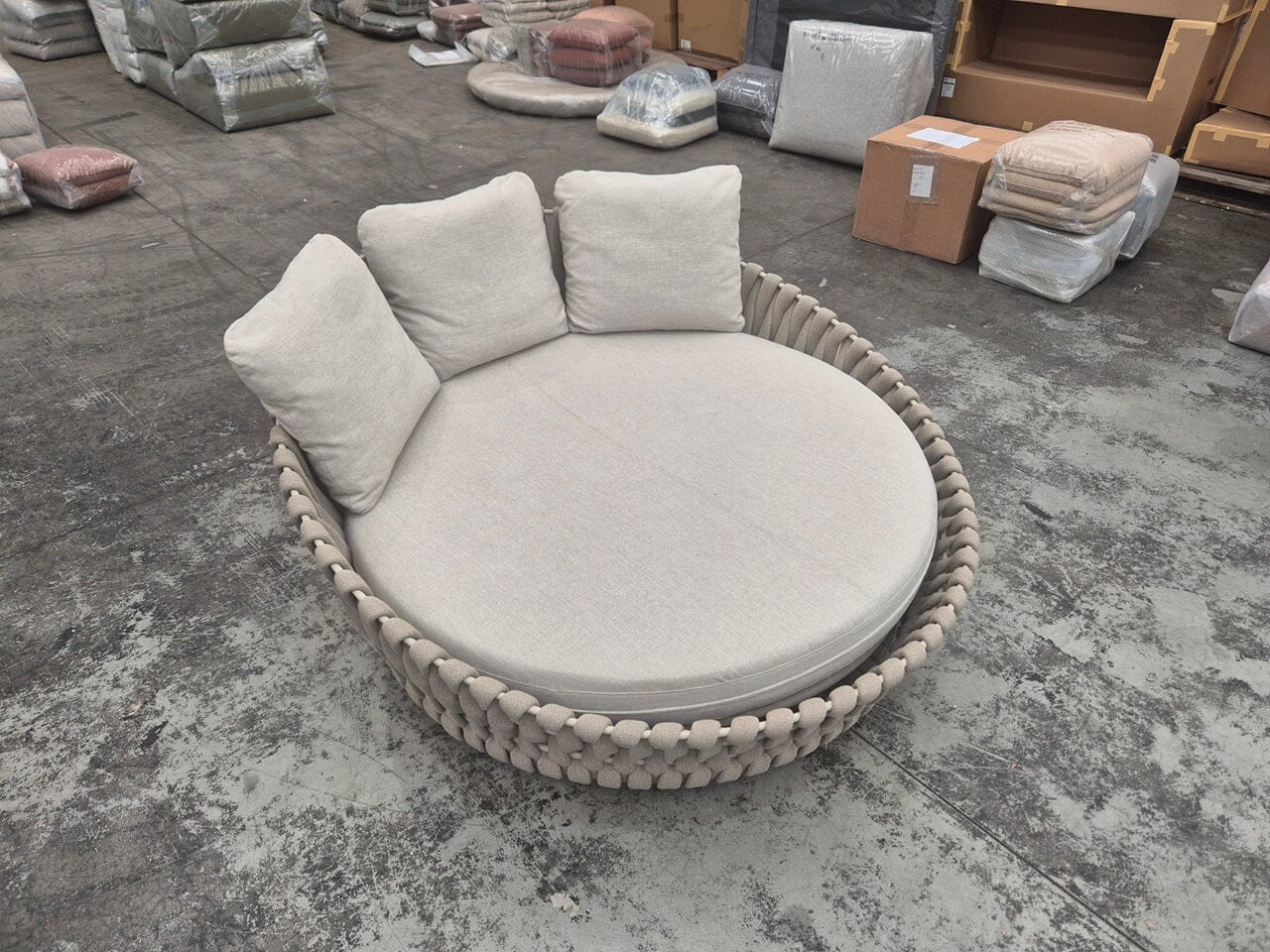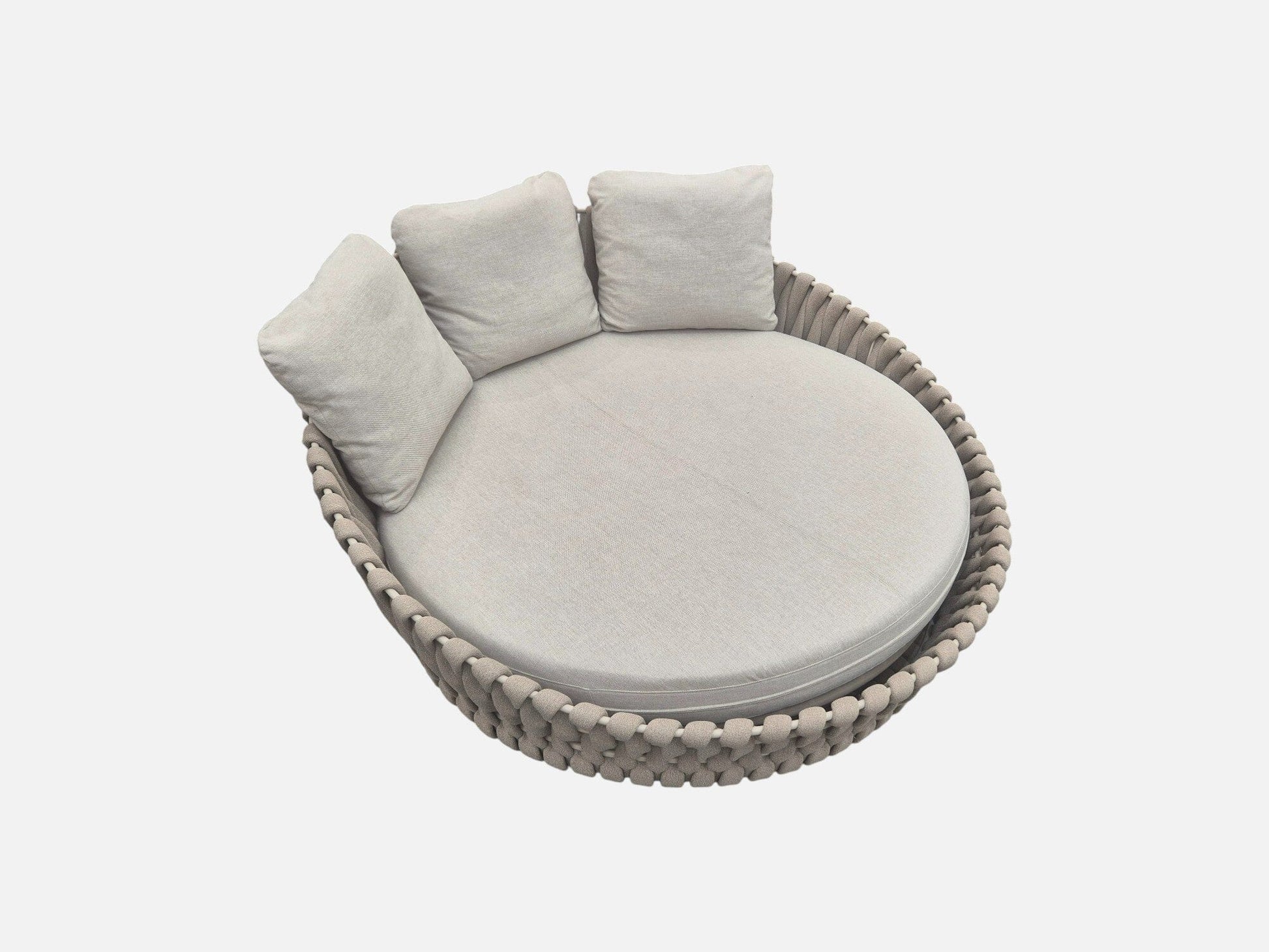 Le matériau utilisé pour le tressage est véritablement innovant : une mousse de polyuréthane est enveloppée dans une gaine sans couture de textilene tricoté et de polyoléfine, ce qui la rend résistante aux intempéries, mais aussi étonnamment naturelle et douce au toucher. Le lit de jour Tosca est idéal pour profiter du soleil en famille ou entre amis. Le confort d’assise est particulièrement appréciable grâce aux coussins d’extérieur confortables.