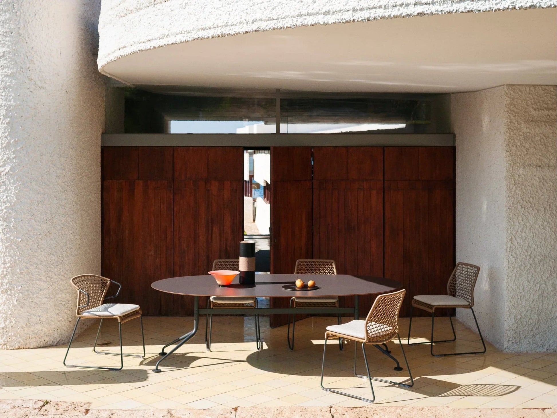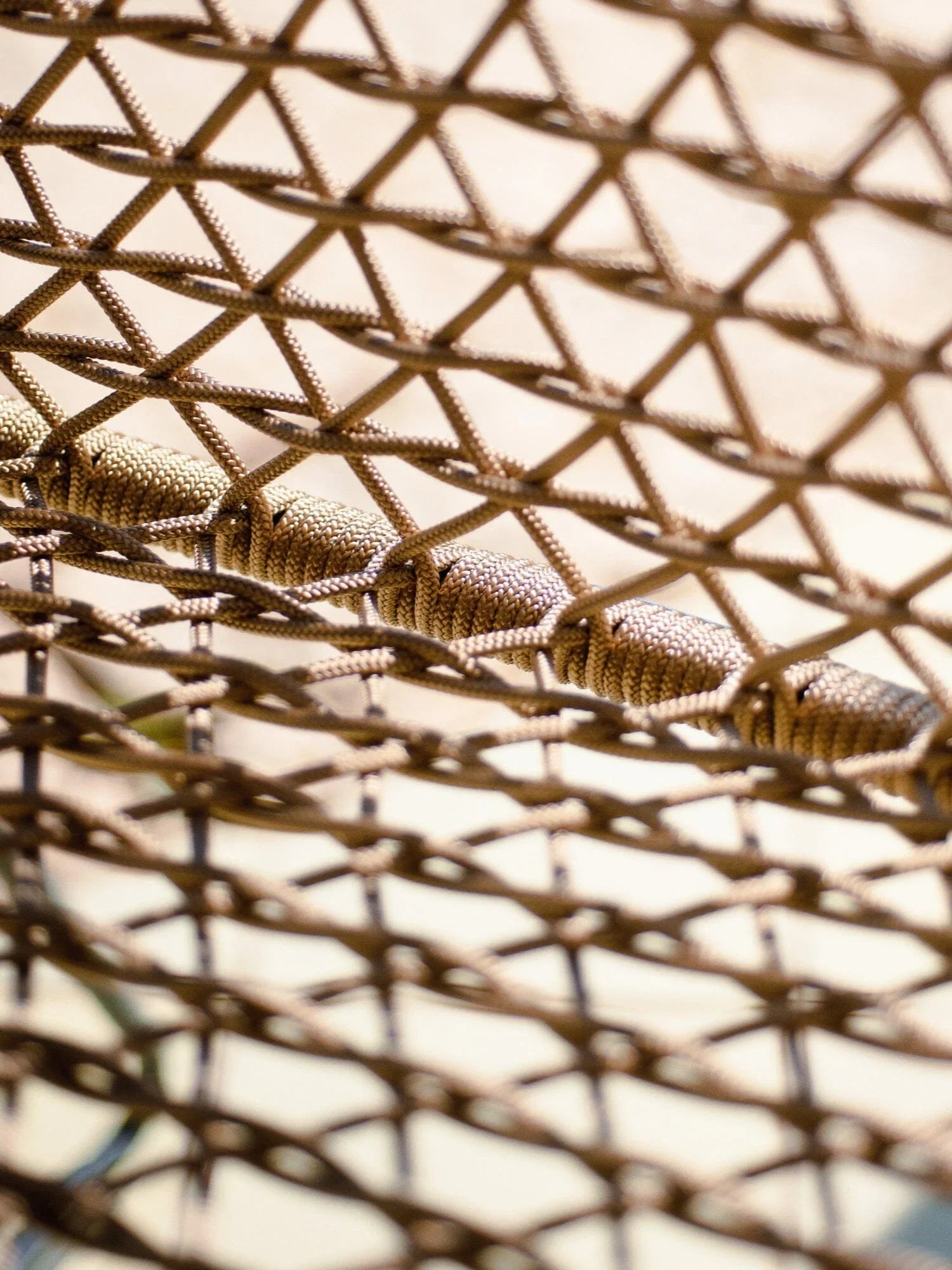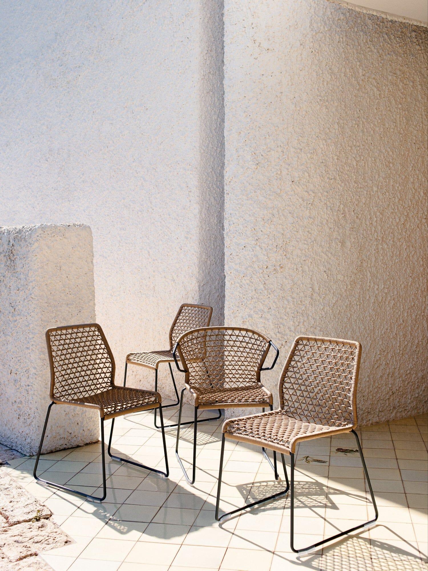 Cette magnifique collection d'intérieur/extérieur évoque la mer. L'inspiration côtière se retrouve dans les couleurs et l'entrelacement des matériaux. Fabriquées artisanalement avec soin et précision, les chaises en corde tressée raffinée dégagent style et qualité. Cette chaise de salle à manger convient aussi bien à l'intérieur qu'à l'extérieur : structure thermolaquée et assise en PVC mat.