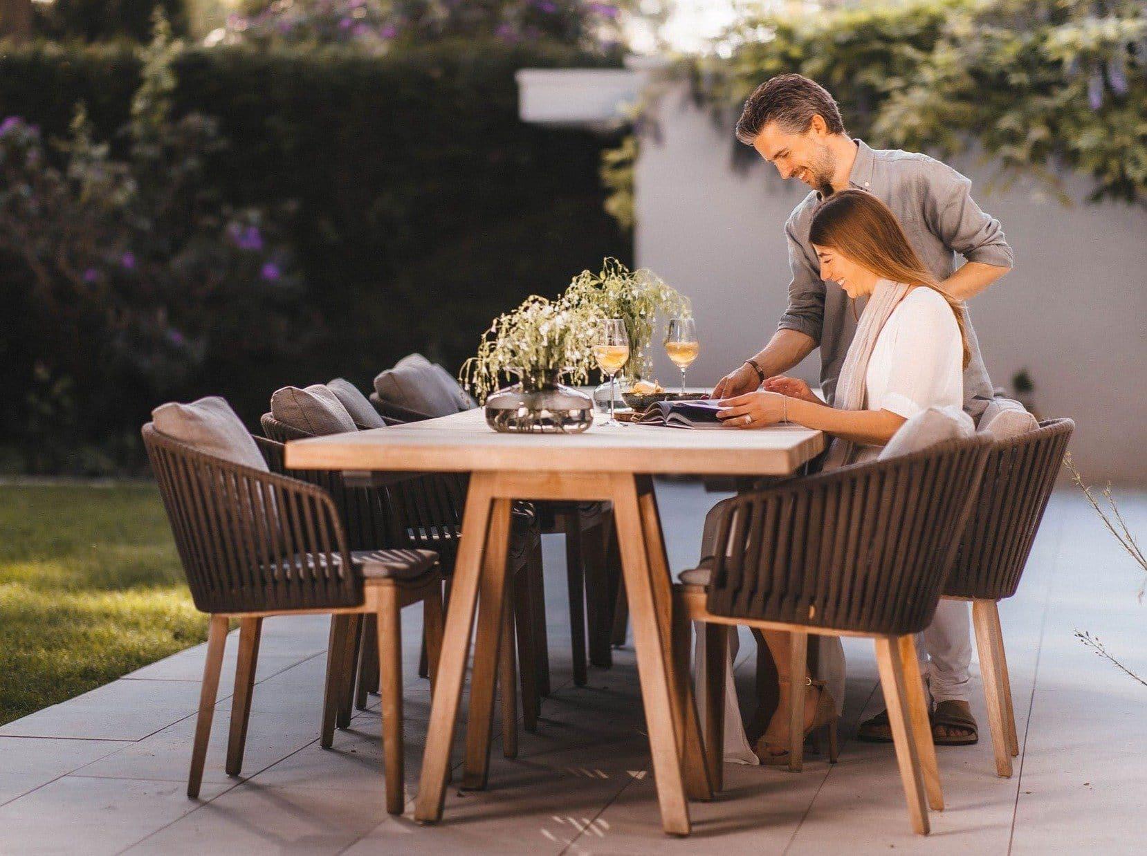 Cette collection donne une nouvelle dimension au mobilier d'extérieur en bois. La table à manger est composée de magnifiques lattes carrées en teck et est disponible en différentes dimensions, y compris une table extra-large mesurant 7 mètres !
