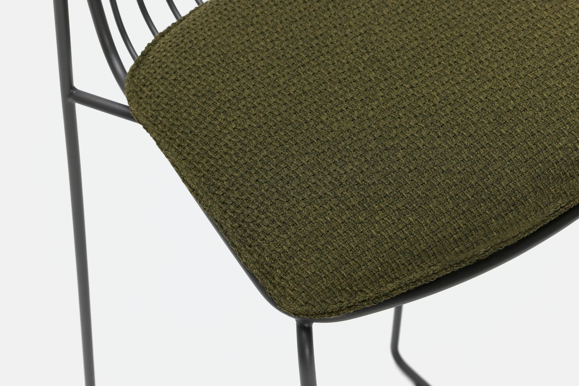 Matériaux : Structure en acier inoxydable thermolaqué. Coussins optionnels, confectionnés localement dans le tissu de votre choix.
